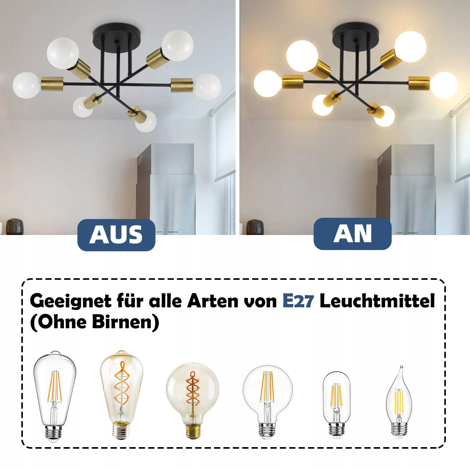 Łatwy w instalacji: Wymaga montażu, ale jest łatwy do zainstalowania. Ramiona lampy sufitowej retro są wstępnie okablowane, co ułatwia montaż. Rozmiar 45 x 45 x 17 cm idealnie pasuje do Twojego sufitu