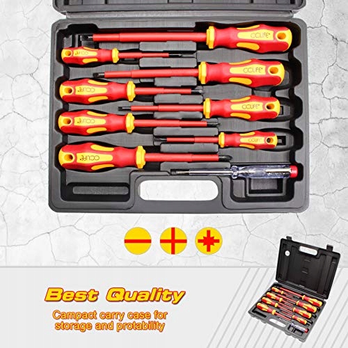CCLIFE 9-częściowy VDE Izolowany Zestaw Wkrętaków 1000V w tym Miernik Napięcia Płaski & PH & PZ
