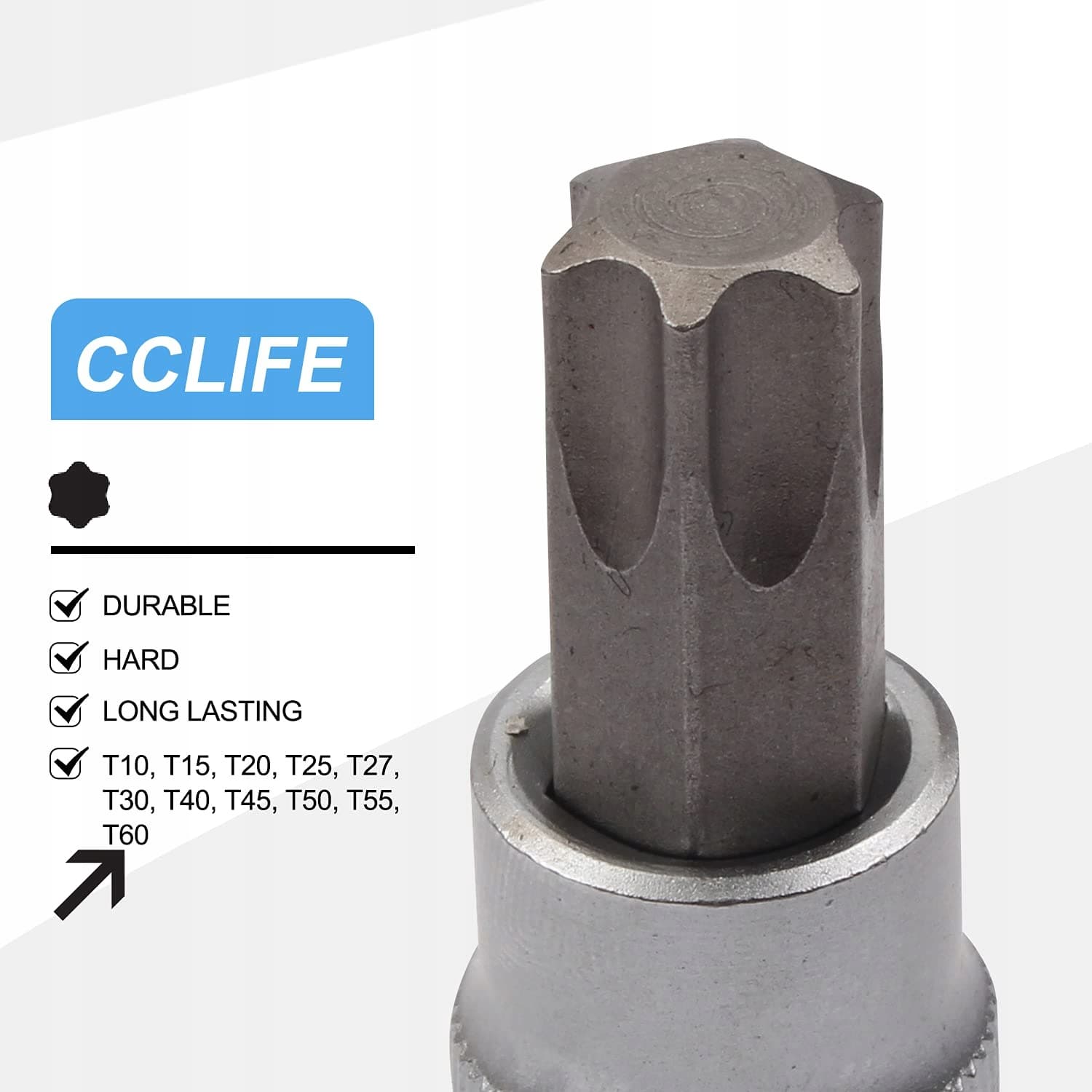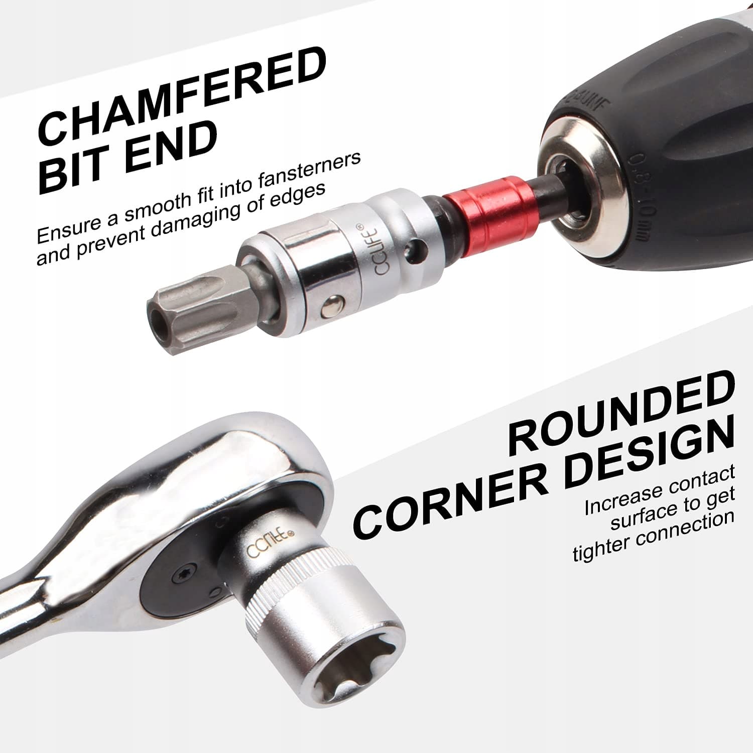 CCLIFE 34-częściowy zestaw kluczy nasadowych Torx i bitów S2 do użytku wewnętrznego i zewnętrznego | Nuta E4-E20 | Zestaw Torx T10-T60 | Nasadki, wkładki bitowe, wkładki kluczy nasadowych