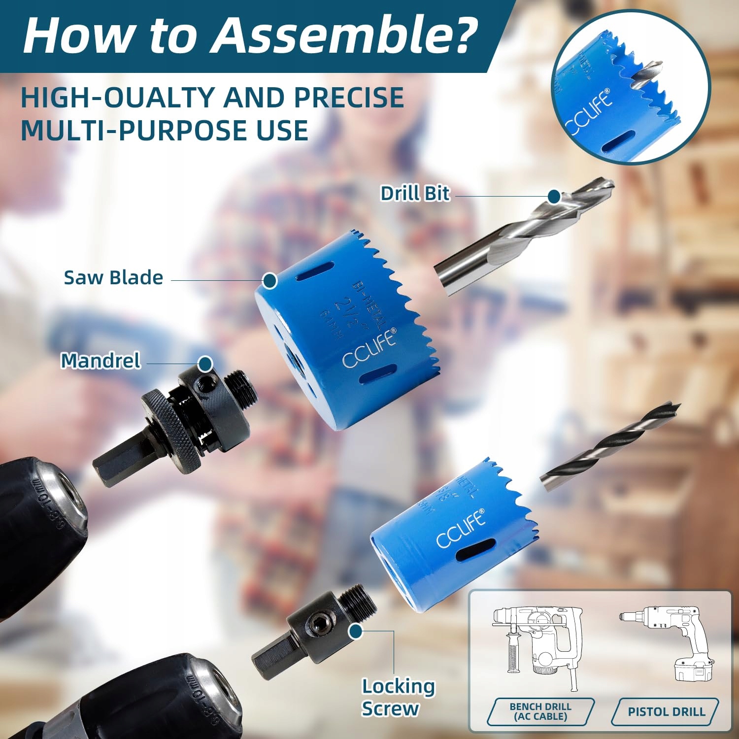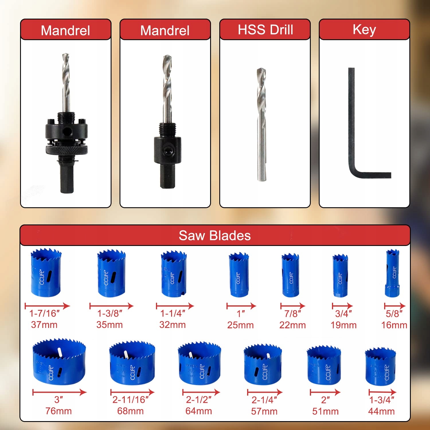 CCLIFE Zestaw Otwornic Bi-Metal 18szt Do Stali Drewna PVC 16-76mm