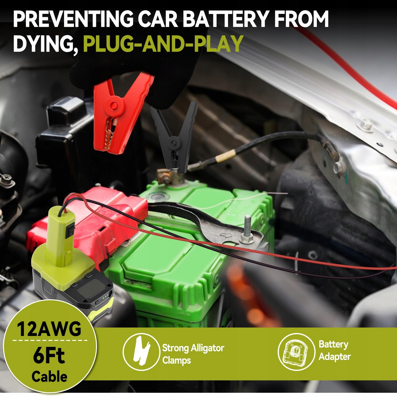 Adapter do rozruchu samochodu dla akumulatora Ryobi 18 V, 12 AWG, 1,8 m, przenośna pomoc rozruchowa, adapter kabla rozruchowego do samochodu (bez akumulatora)