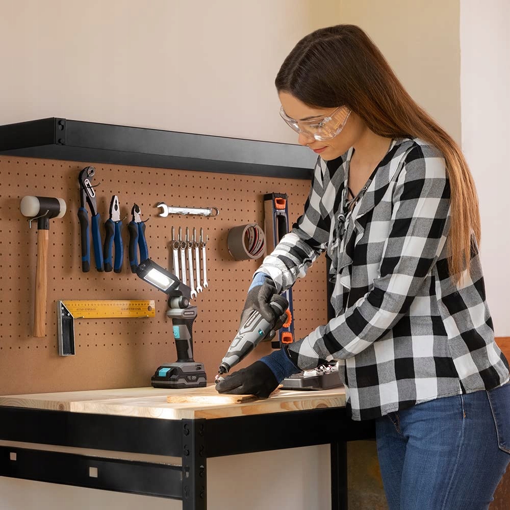 Świecący wskaźnik LED. Dzięki wskaźnikowi LED możesz wiedzieć, kiedy jest gotowe do użycia lub jaki jest stan naładowania akumulatora urządzenia. Do 4 godzin czasu pracy i gwarantuje pełne wykonanie wszystkich Twoich projektów DIY.