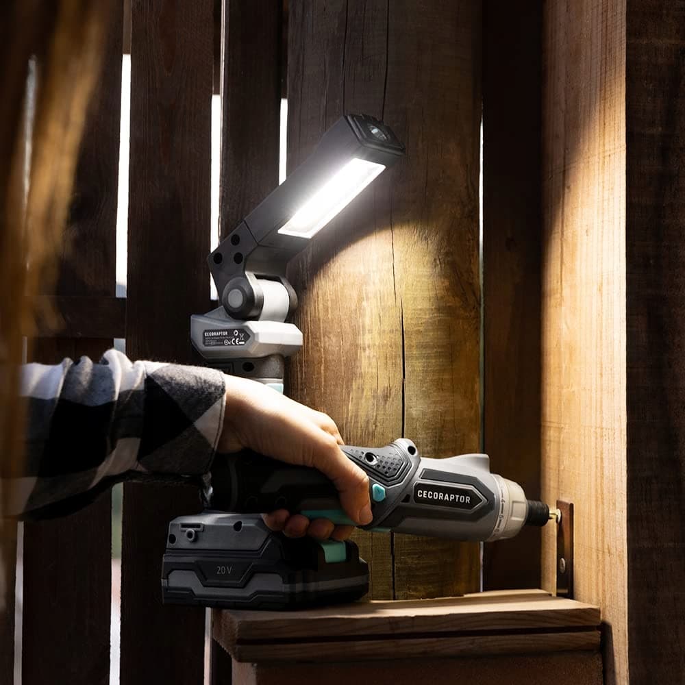 Bezprzewodowa lampa robocza z akumulatorem litowo-jonowym 20 V 2000 mAh, wymienna z wszystkimi narzędziami 20 V z serii CecoRaptor Perfect.