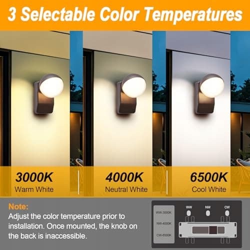 【3 kolory światła – 3 nastroje】: Z lampą zewnętrzną CELAVY szybko ustawisz idealne oświetlenie: wybierz między 3000K ciepłą bielą na przytulne wieczory, 4000K neutralną bielą na jasne światło codzienne oraz 6500K zimną bielą na skoncentrowane chwile – wszystko realizowane przez wysokiej jakości diody LED. Przełącznik wyboru koloru znajduje się z tyłu urządzenia. Prosimy ustawić wybrany kolor wygodnie przed ostatecznym montażem na ścianie.