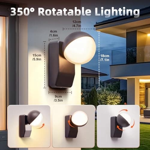 【350° kierowanie światłem tam, gdzie potrzebujesz】: Dzięki głowicy w pełni obracanej o 350° w kinkiecie zewnętrznym CELAVY masz pełną kontrolę po montażu. Łatwo skieruj precyzyjny strumień światła – na ścieżkę w ogrodzie, ławkę na tarasie lub drzwi wejściowe. Ta wszechstronna elastyczność czyni lampę idealnym uniwersalnym rozwiązaniem na każdą sytuację.