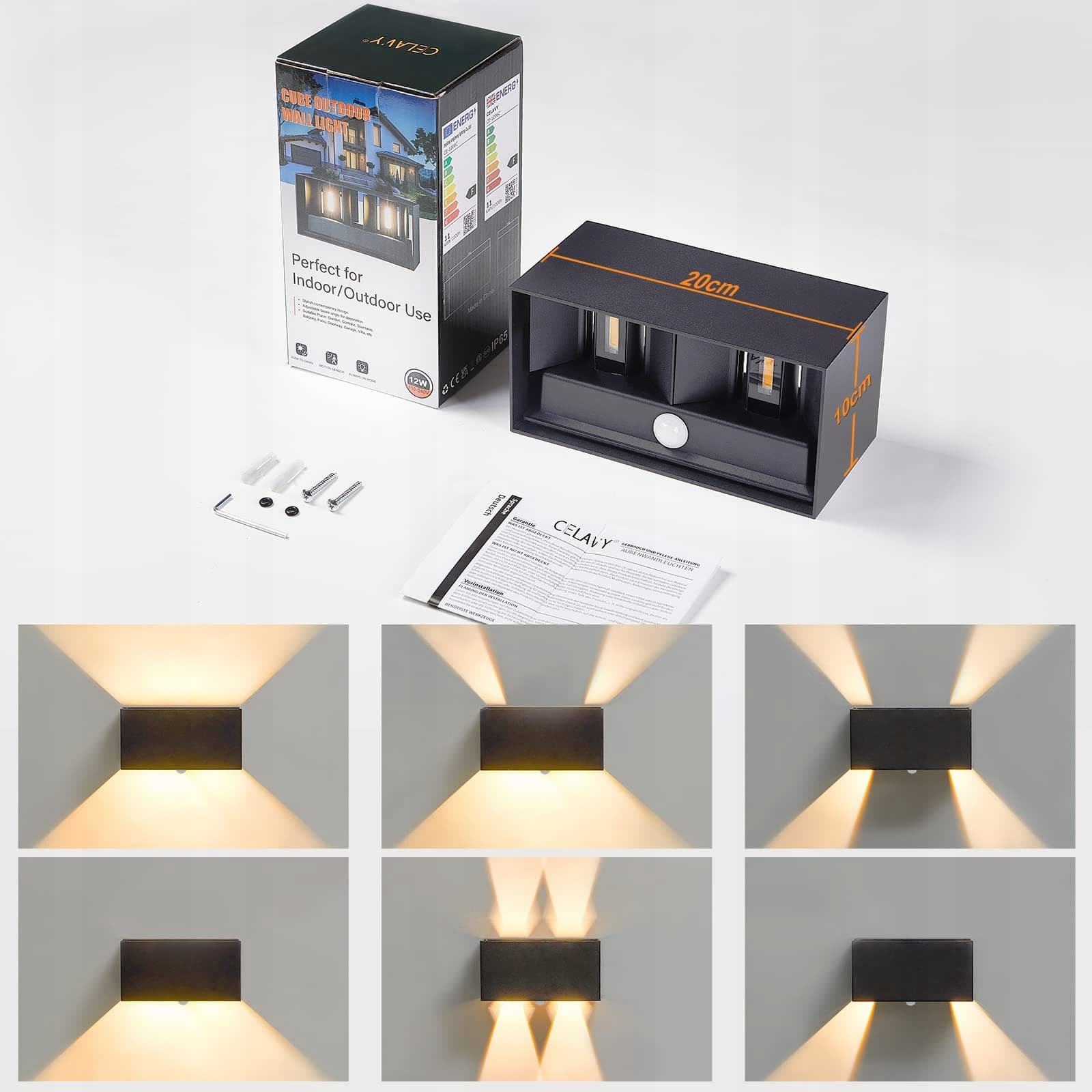 【Ulepszony regulowany kąt padania światła】- Kinkiet zewnętrzny CELAVY posiada 8 ruchomych skrzydeł, dzięki czemu można łatwo dostosować kierunek światła w górę i w dół według własnych potrzeb. Po ustawieniu ta piękna lampa ścienna z czujnikiem ruchu zapewni naprawdę jasne i piękne światło.
