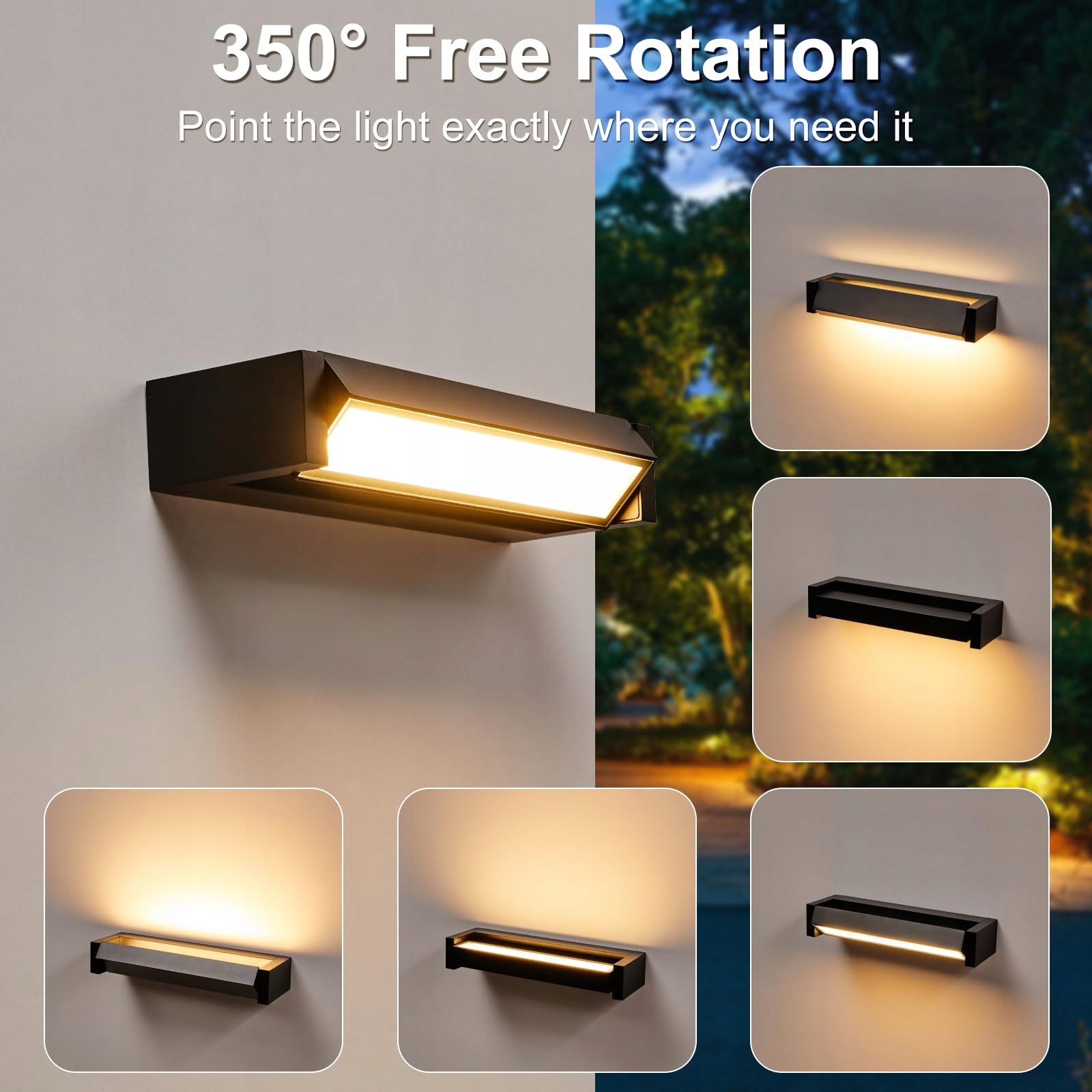 【Elastyczne ustawienie światła】: Obracany panel LED tej lampy ściennej na zewnątrz od CELAVY można precyzyjnie pochylać pionowo o 350°. Dzięki temu dostosujesz kąt oświetlenia elewacji domu dokładnie do swoich potrzeb – od bezpośredniego oświetlenia akcentowego po przyjemne, pośrednie światło. Wysoko wydajna lampa LED na zewnątrz w ciepłej bieli 3000K zapewnia nie tylko estetyczne oświetlenie elewacji, ale także wyróżnia się trwałością i energooszczędnością.