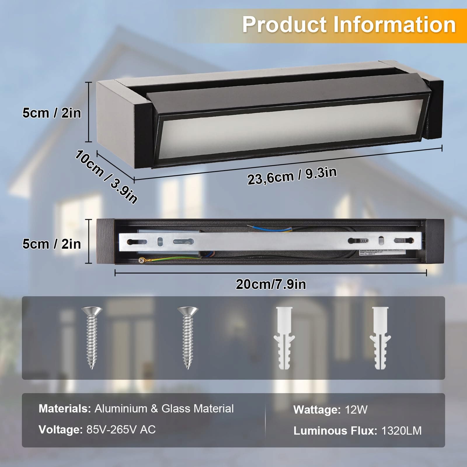 【Kompletny zestaw do łatwego montażu】: Lampa ścienna outdoor od CELAVY jest kompaktowa (23,6 x 5 x 10 cm), oferuje 12W i 1320 lumenów przy przyjemnym ciepłym świetle 3000K oraz zawiera akcesoria montażowe i szczegółową instrukcję. Dzięki temu szybko i samodzielnie zamontujesz tę lampę na ścianie na zewnątrz. Dla maksymalnego bezpieczeństwa zalecamy profesjonalny montaż.
