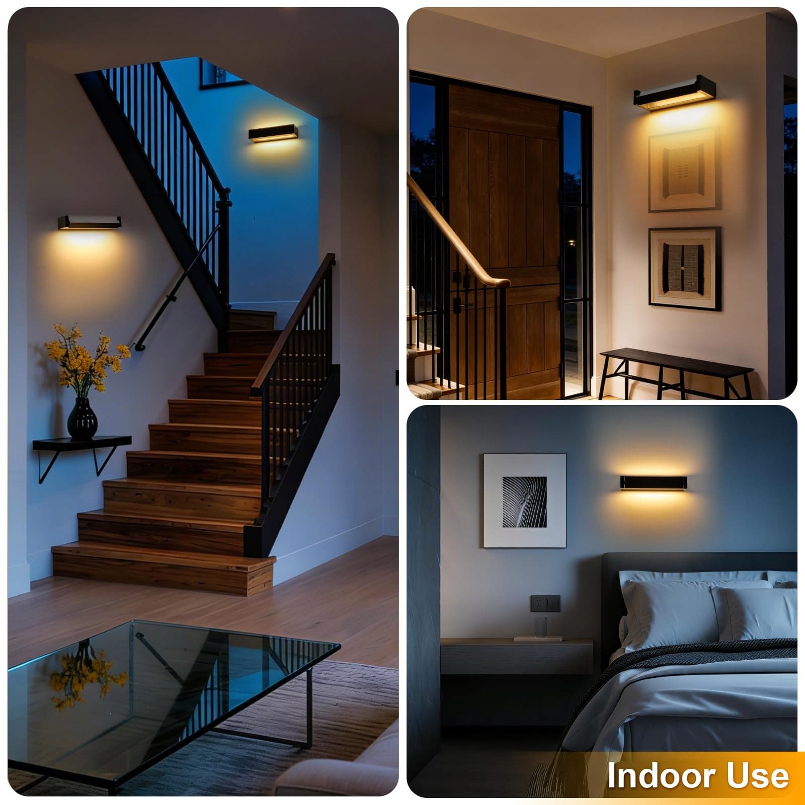【Ponadczasowy design do wielu stylów】: Prosty, prostokątny design z matową czarną powierzchnią nadaje temu oświetleniu elewacji domu elegancki, nowoczesny wygląd. Ten wszechstronny reflektor ścienny na zewnątrz pasuje do wielu stylów architektonicznych i aranżacyjnych oraz stanowi dekoracyjny akcent jako lampa ścienna na zewnątrz w ogrodzie, na elewacji domu, w klatce schodowej, łazience czy kuchni.