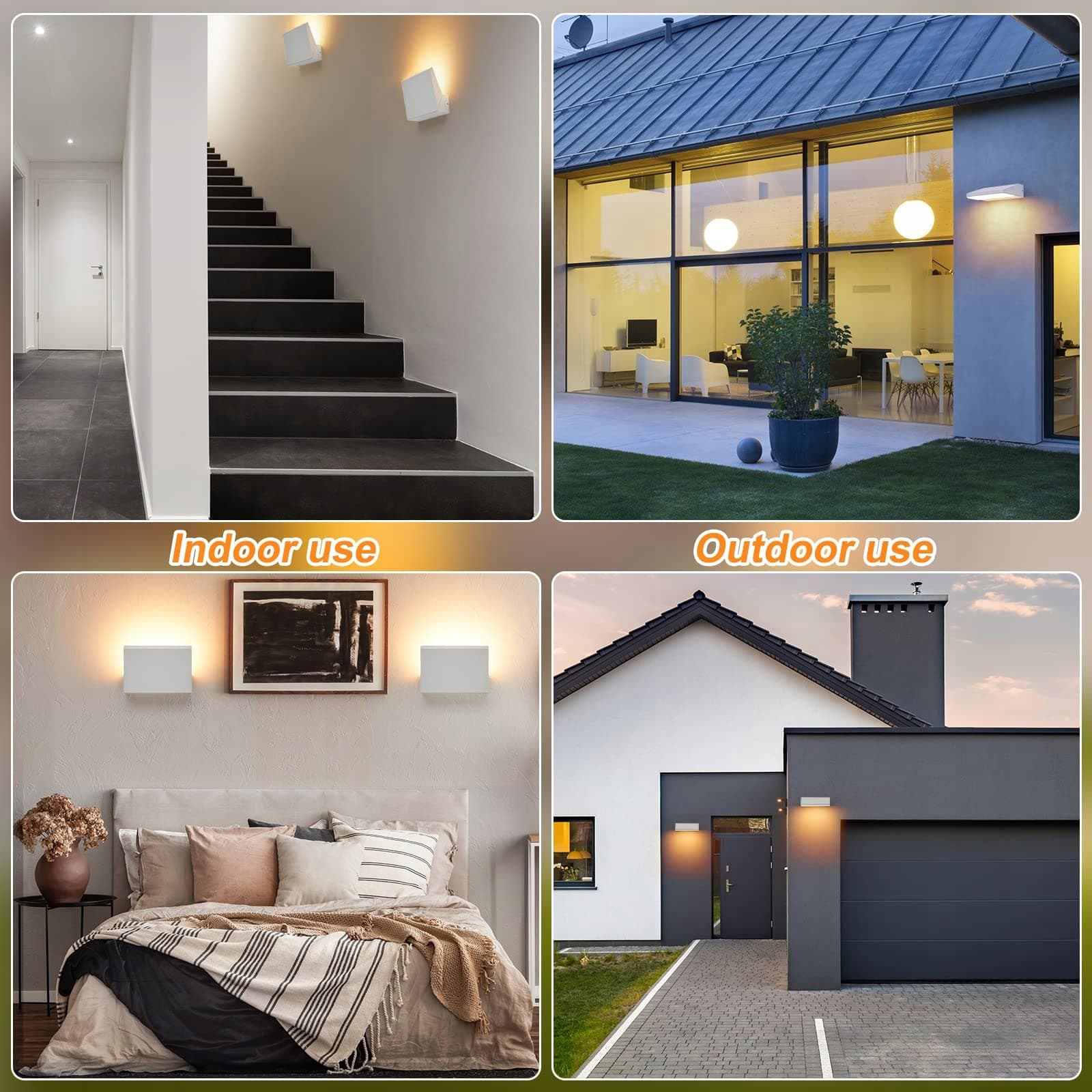 [Szerokie zastosowanie]Dzięki doskonałej klasie ochrony IP65, nasz zewnętrzny reflektor ścienny jest idealny do użytku wewnątrz i na zewnątrz. Możesz umieścić piękne oświetlenie ścienne w swoim salonie, sypialni, klatce schodowej, łazience, korytarzu, schodach, drzwiach wejściowych, wejściu, ogrodzie, tarasie, ścianie zewnętrznej i balkonie.