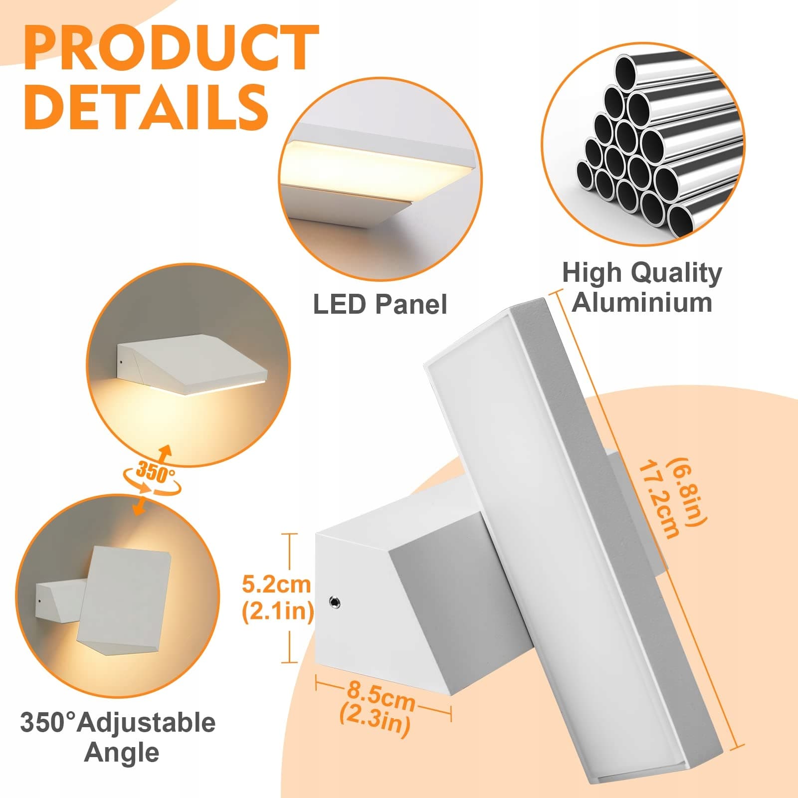[Co otrzymasz]Po szybkiej dostawie otrzymasz elegancką lampę ścienną o prostym designie. Regulowana lampa ścienna CELAVY ma niewielkie wymiary (17,2 cm x 14,1 cm x 5,2 cm), ale jasne ciepłe światło (2700K, 1350LM), które tworzy przytulną atmosferę w Twoim domu.