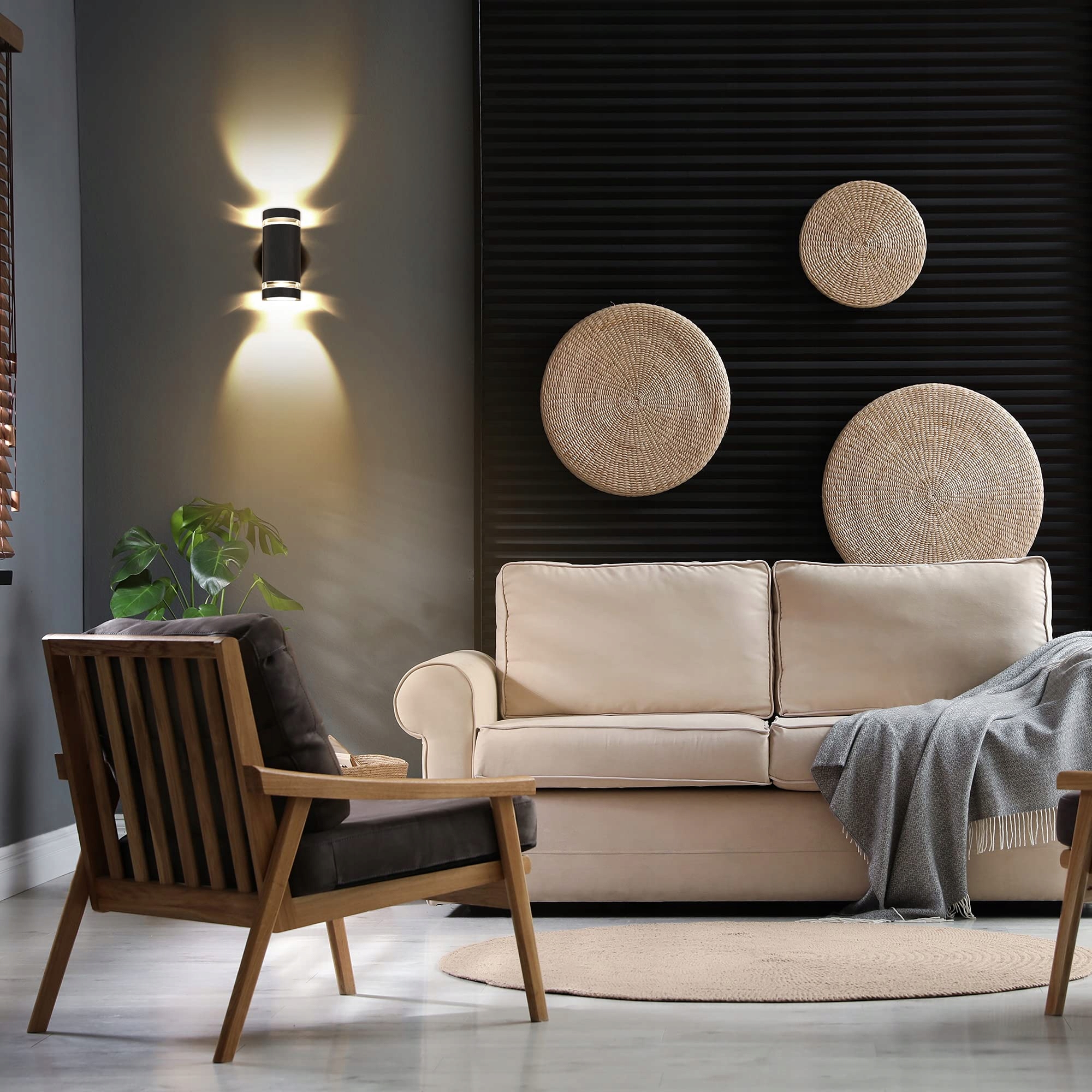 🏡【Szerokie zastosowanie】: Dzięki klasie ochrony IP65 nasze oświetlenie ścienne jest wyjątkowo odporne na wodę i kurz, dlatego ta lampa będzie idealnym wyborem do wnętrz i na zewnątrz, takich jak salon, sypialnia, ogród, korytarz i inne.