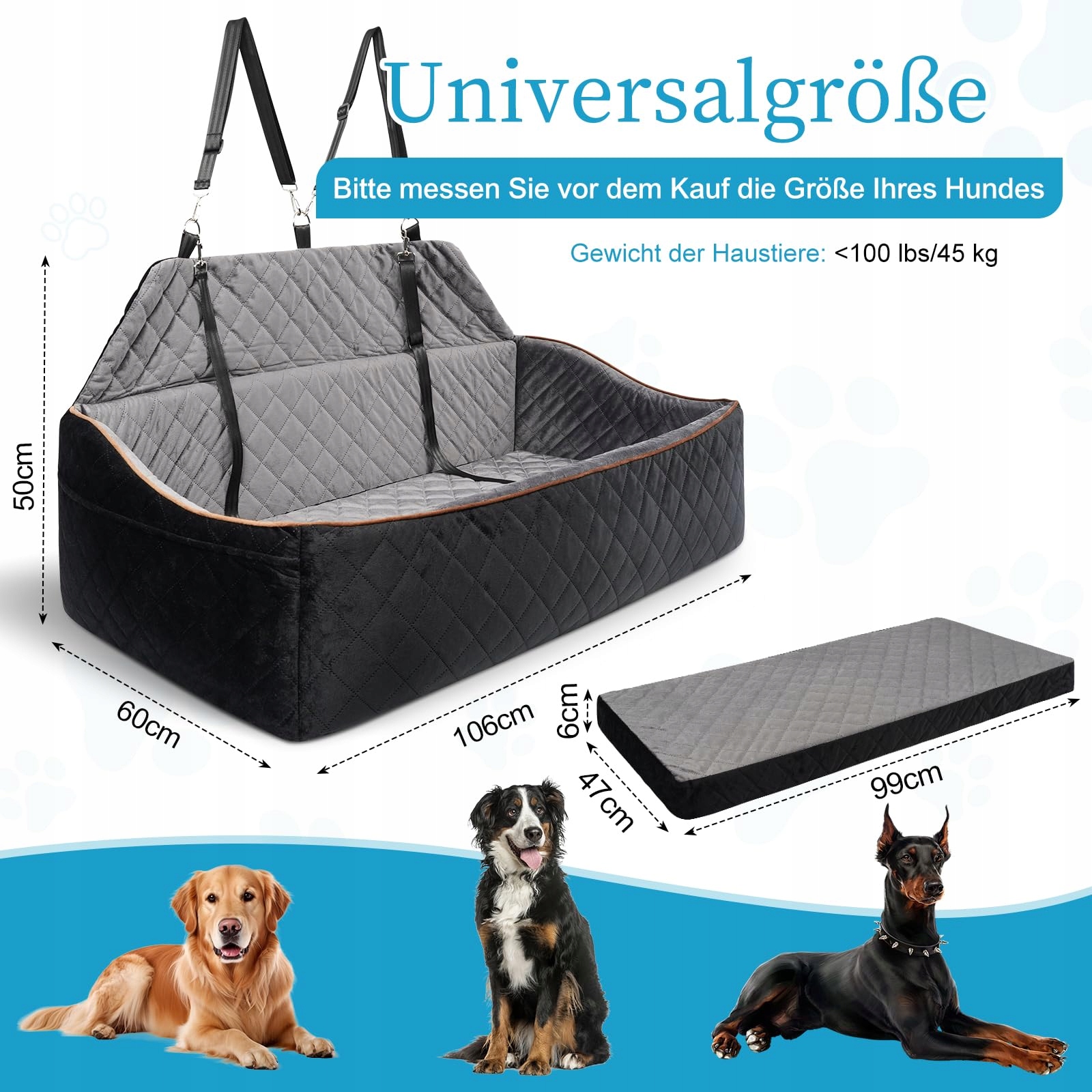 【Idealne dopasowanie dla średnich/dużych zwierząt domowych】: Fotelik samochodowy dla psów średnich/dużych od CEMOFE ma wymiary 108 x 50 x 53 cm i jest idealny dla średnich do dużych psów lub kotów o wadze do 45 kg. Ten fotelik samochodowy dla psów pasuje do większości samochodów, SUV-ów i ciężarówek i może być umieszczony zarówno na tylnej kanapie, jak i w bagażniku. PRAKTYCZNY WSKAZÓWKA: Przed zakupem zmierz swojego zwierzaka, aby zapewnić idealne dopasowanie na Twojej następnej podróży.