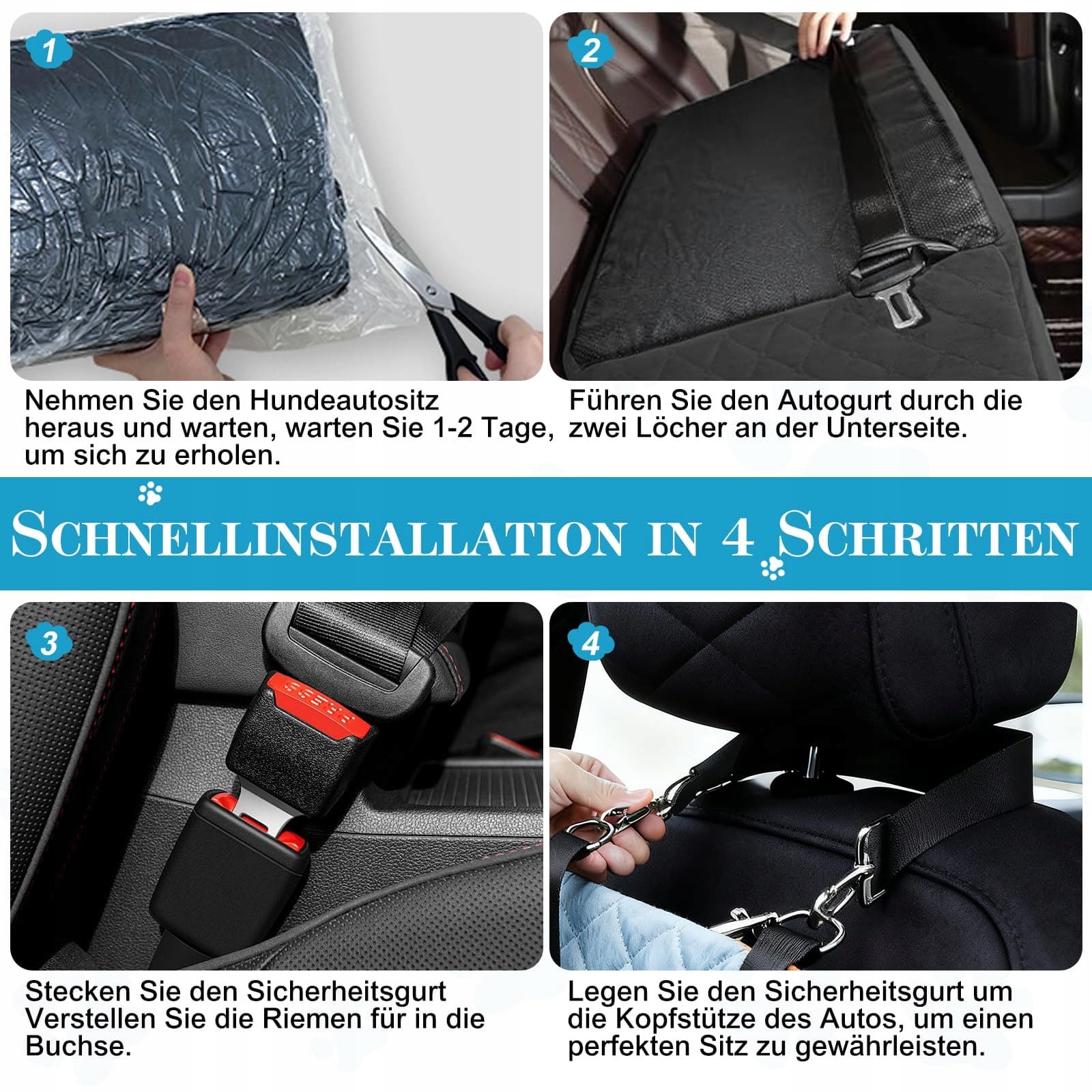 【Szybki montaż i łatwe czyszczenie】: Instalacja tego fotelika samochodowego dla psów trwa tylko kilka minut – przeprowadź pas bezpieczeństwa przez otwory w podłodze, zamocuj górne paski na zagłówku i dostosuj. Do czyszczenia wystarczy zdjąć pokrywę i wkładkę i wyprać w pralce – a fotelik samochodowy dla psów jest znowu higienicznie czysty.