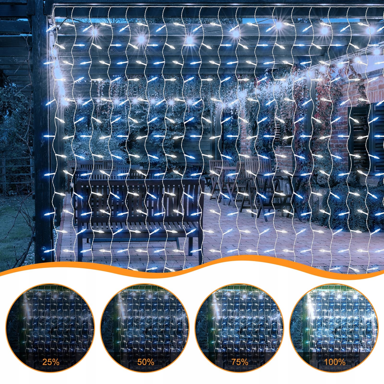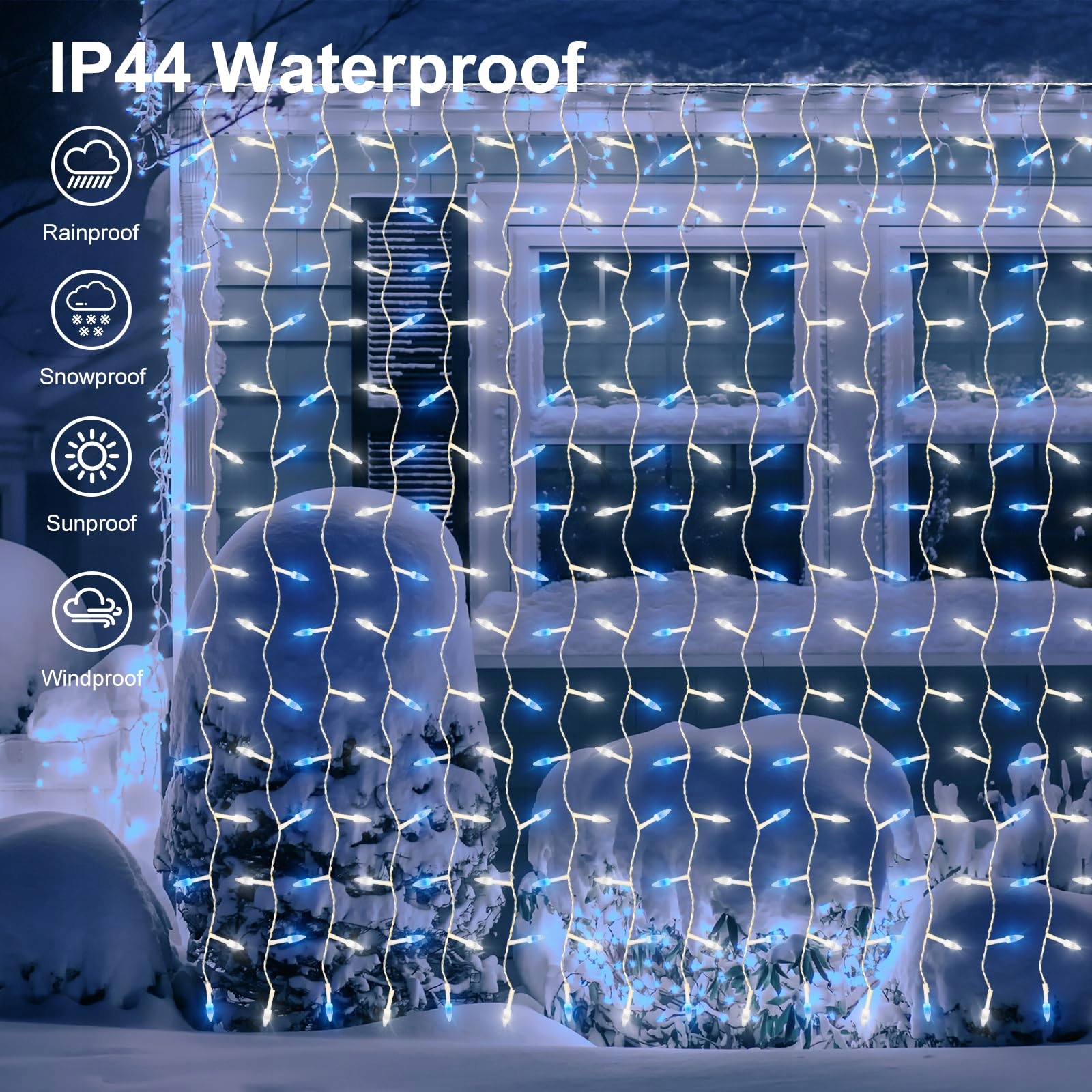 CERIAL 4X2M 300LEDs Zewnętrzny zasłonowy łańcuch świetlny z wtyczką, Mini łańcuch świetlny wewnętrzny, Zasłonowy łańcuch świetlny na Boże Narodzenie, Lód deszczowy łańcuch świetlny do dekoracji na wakacje, wesele, Niebieski + Biały