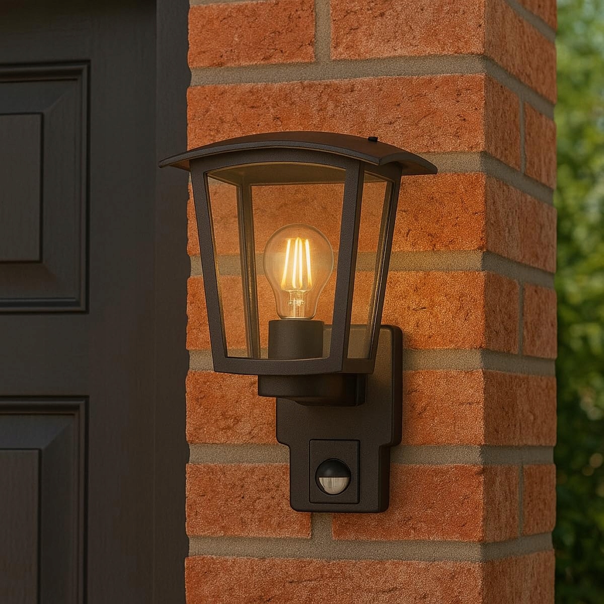 CGC LIGHTING Zewnętrzna Lampa Ścienna Czarna Latarnia LED IP44 E27 PIR | Premium Supply