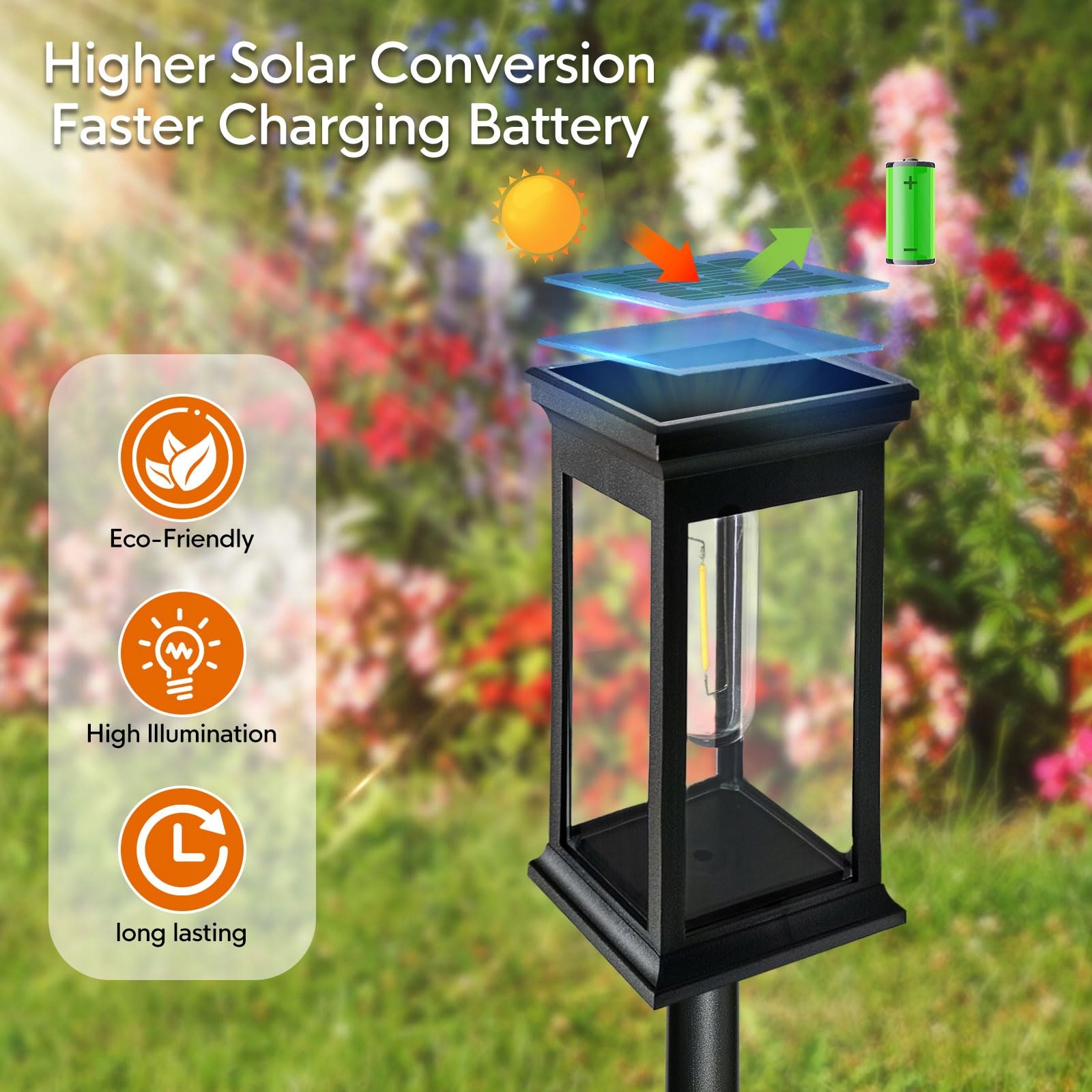 Ochrona środowiska i oszczędność energii: Dzięki współczynnikowi konwersji 21% lampa solarna na zewnątrz może świecić przez 8-10 godzin, nawet w trudnych warunkach słabego światła słonecznego w Niemczech lub podczas deszczowych zim. Wydajne i ekologiczne lampy solarne do ogrodu i na zewnątrz. Energia słoneczna jest zielonym źródłem energii, które znacznie redukuje emisję CO2.