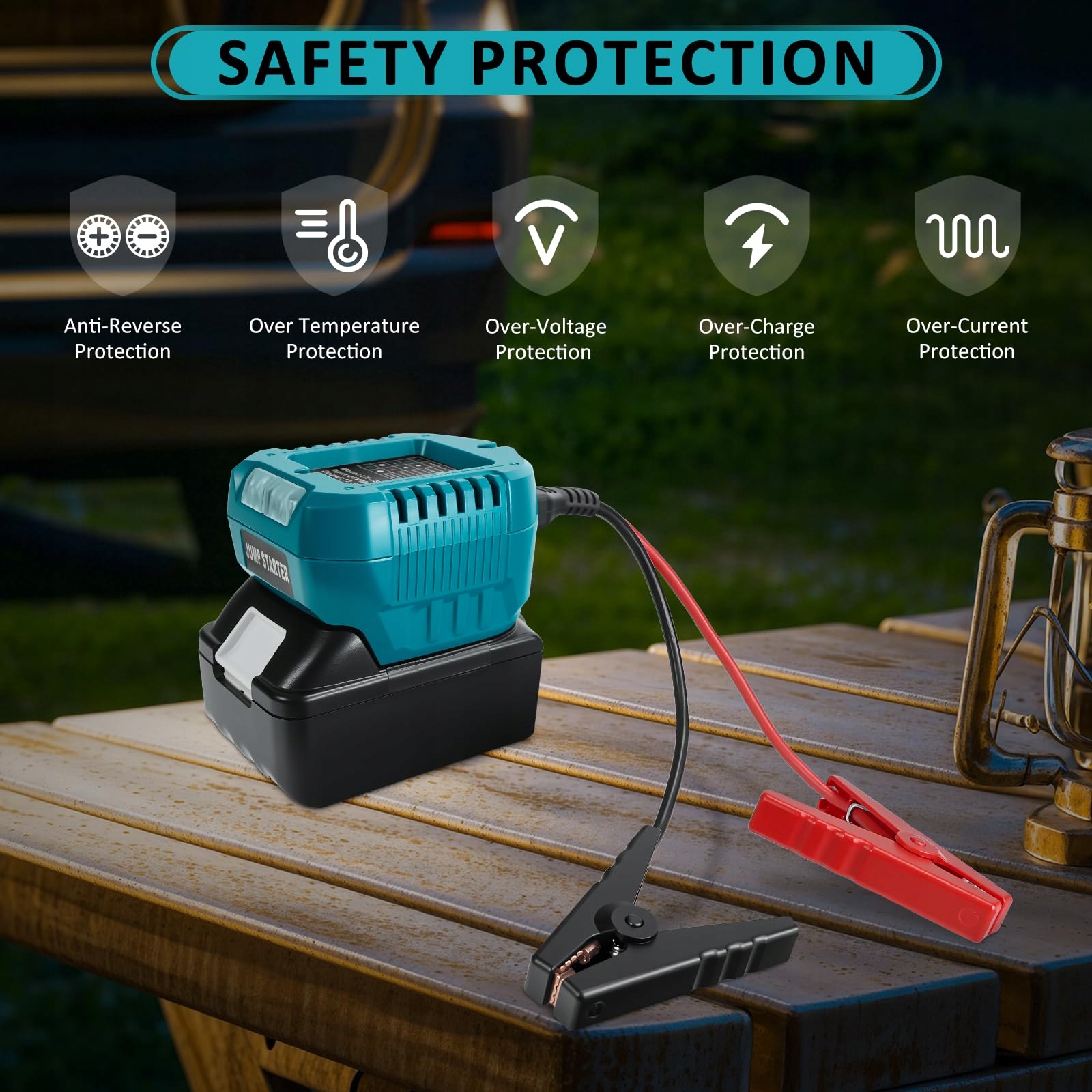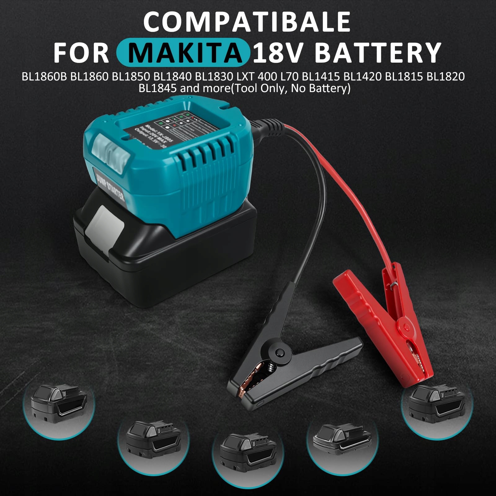 Kompatybilny z akumulatorami Makita 18V: Ten adapter powerbank do rozruchu jest przeznaczony do litowych akumulatorów Makita 18V, takich jak BL1860B BL1860 BL1850 BL1840 BL1830 LXT 400 L70 BL1415 BL1420 BL1815 BL1820 BL1845 i innych (akumulator NIE jest dołączony)
