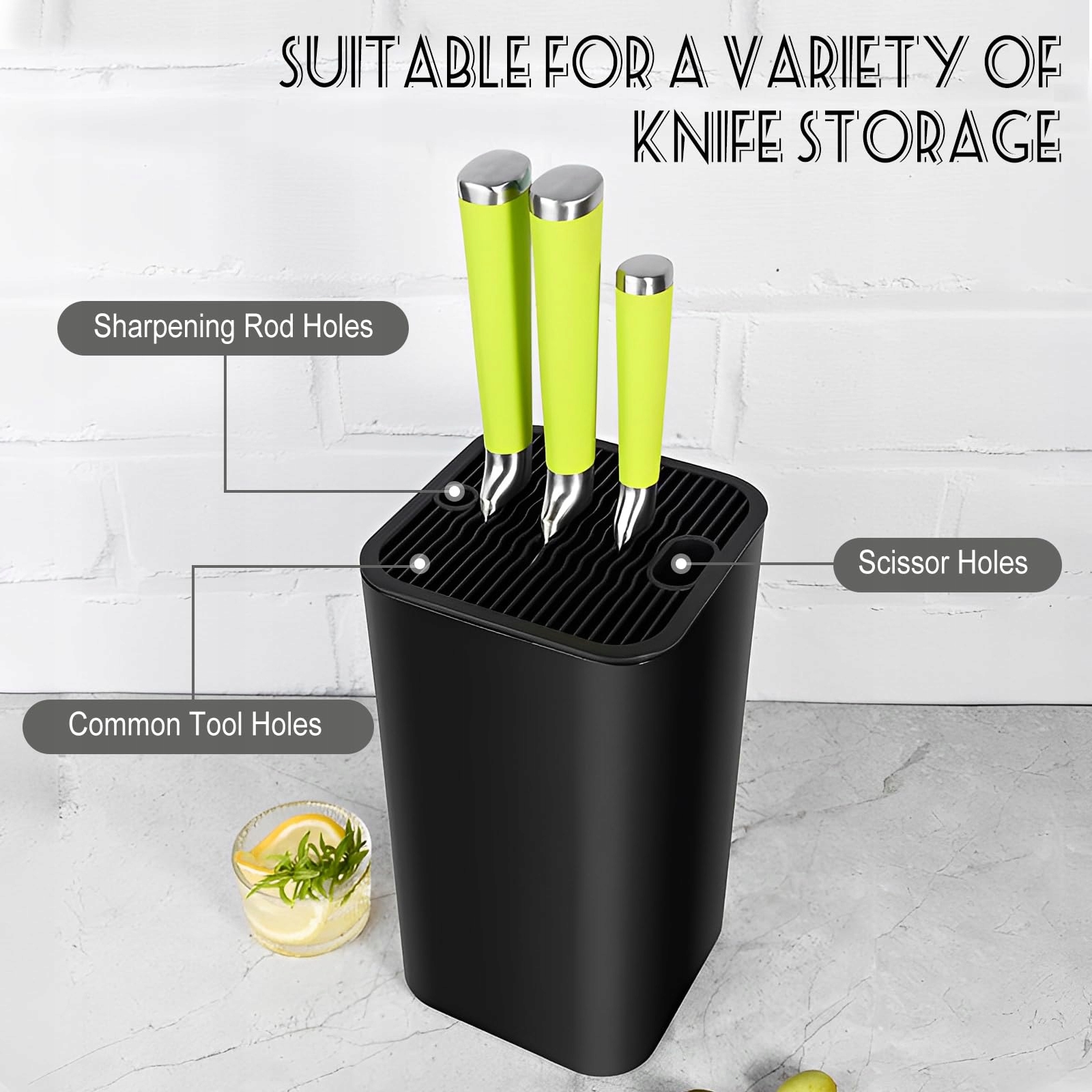 CHENKEE Uniwersalny blok na noże, blok na noże bez noży, czarny uchwyt na noże z otworem do odpływu, kwadratowy uchwyt na noże, do przechowywania noży, odpowiedni do kuchni domowych, restauracji, hoteli