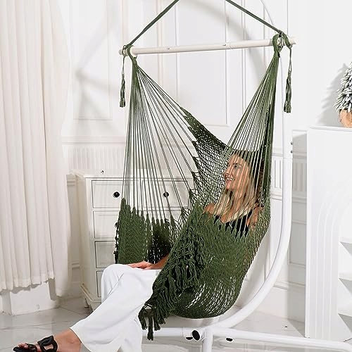 CHIHEE Duży Fotel Wiszący Miękka Bawełna Metalowa Belka Szerokie Siedzisko Do Wnętrz i Ogrodu
