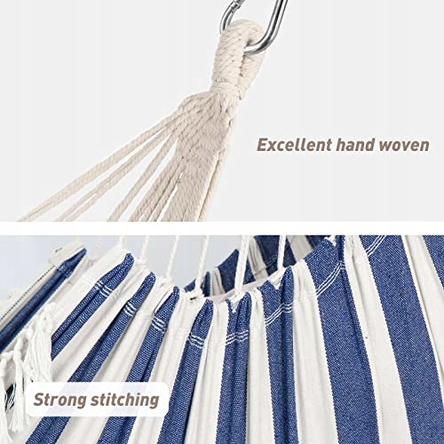 Silna wytrzymałość i stabilność: Wyposażone w 2 nierozciągliwe paski poliestrowe i 2 mocne karabińczyki żelazne jako system zawieszenia. Krzesło hamakowe z 2 paskami zamiast poprzeczki sprawia, że krzesło ma 2 punkty zawieszenia, jest bezpieczniejsze, stabilniejsze i zapobiega przewróceniu się. Gęstość tkaniny jest niezwykle wysoka, szwy są wzmocnione, a sznurki są mocne, co zapewnia bezpieczne doświadczenie pod każdym względem.