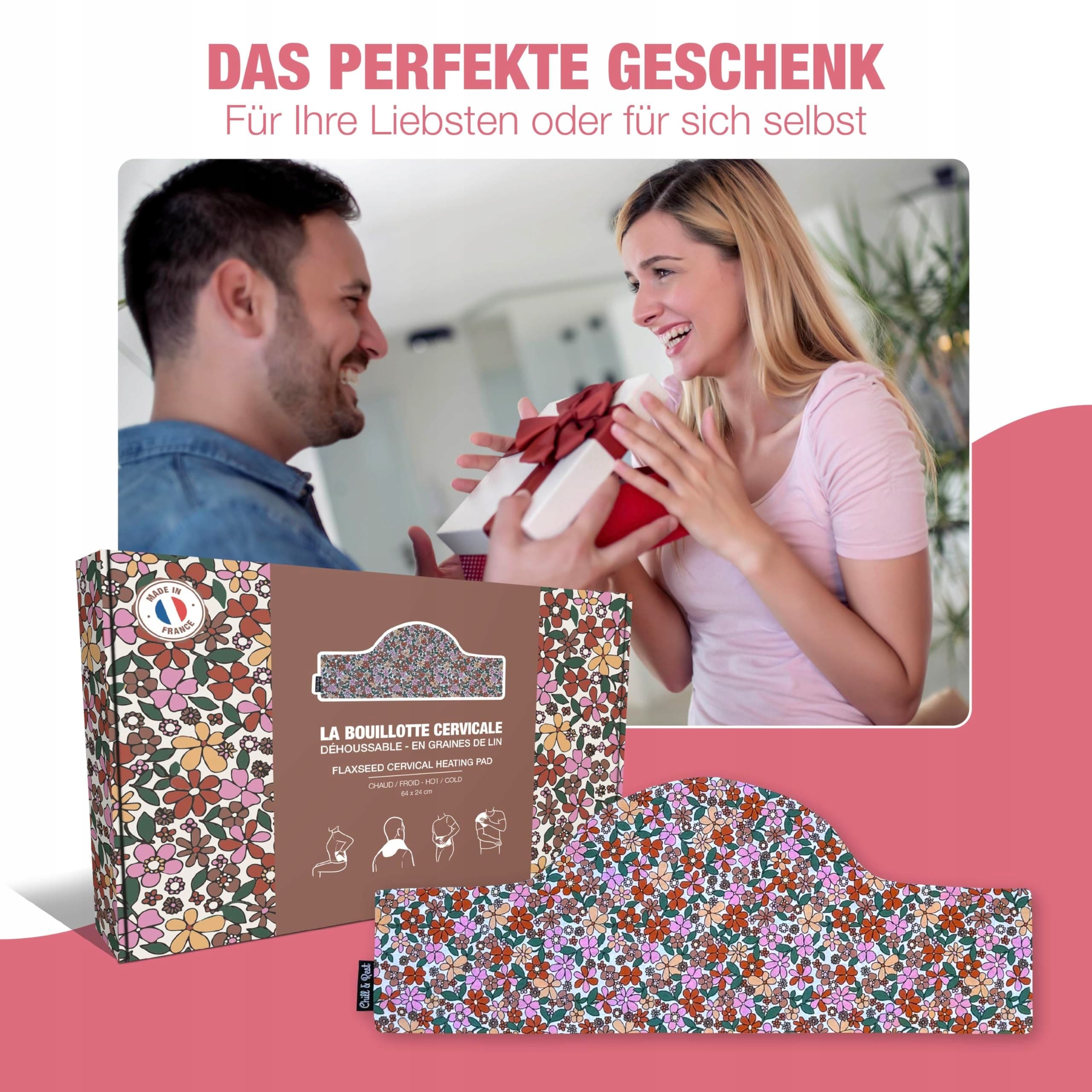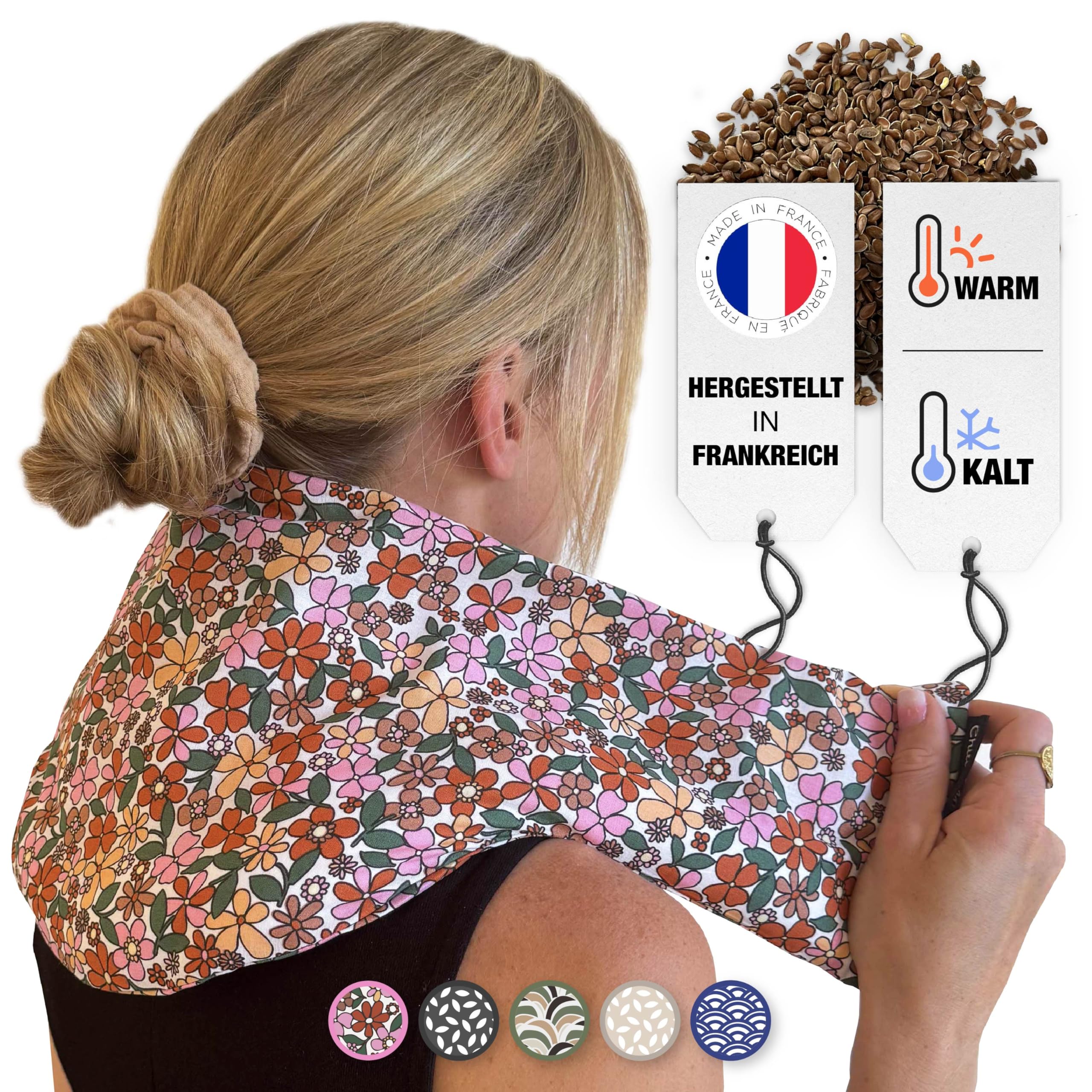 🇫🇷 WYPRODUKOWANE WE FRANCJI – Nasza poduszka termiczna jest produkowana na południowym zachodzie Francji. Używamy wysokiej jakości siemienia lnianego i materiałów wolnych od szkodliwych substancji do naszego produktu. Nasze rzemieślnicze podejście tworzy unikalny produkt, który jest przyjazny dla środowiska i wspiera Twoje dobre samopoczucie.