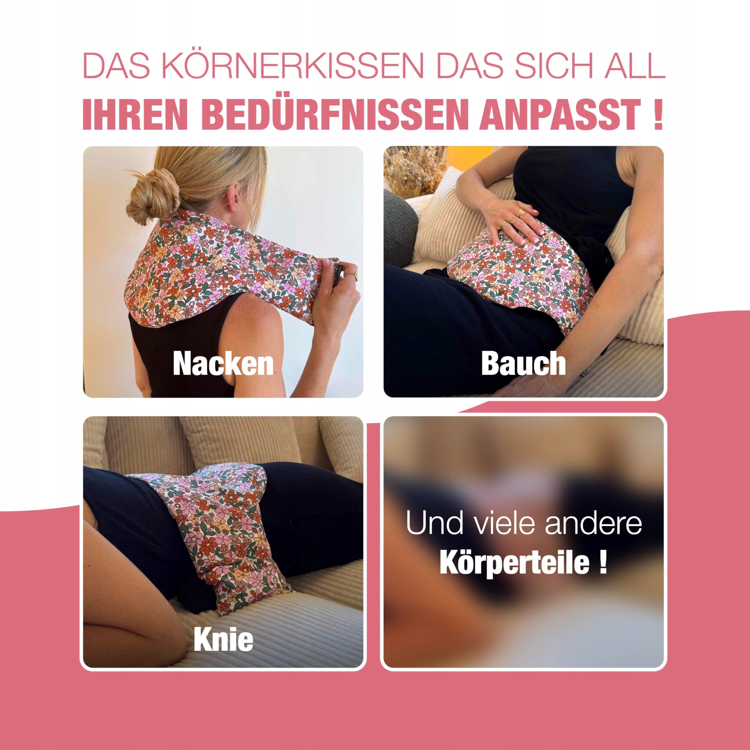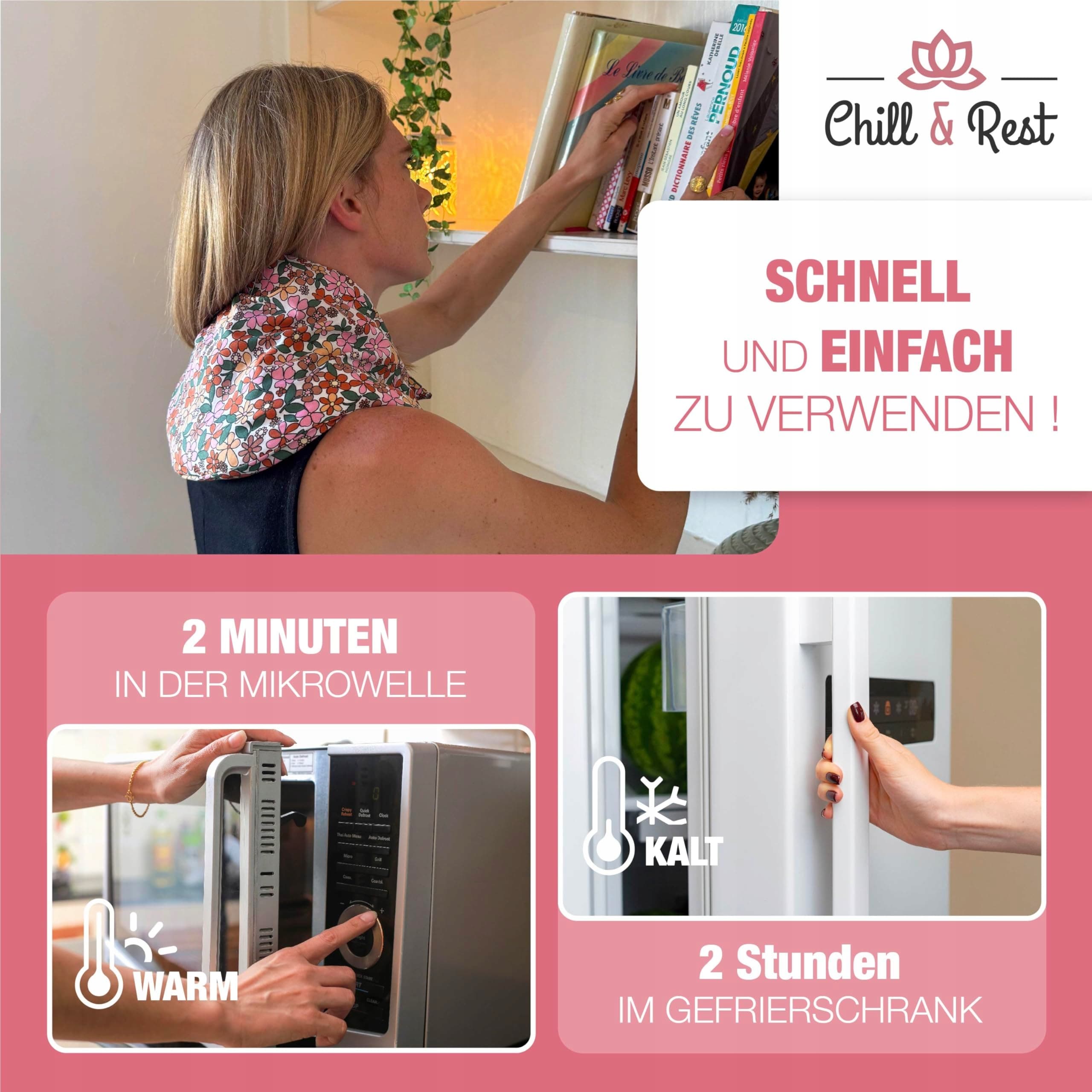 Chill&Rest - ogrzewacz na kark do mikrofalówki - poduszka termiczna na brzuch - poduszka z ziarnami na kark i ramiona - bolesne miesiączkowanie - okres - pomysł na prezent dla kobiet - różowy - The Florale