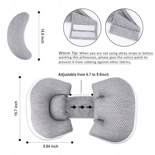 Elastyczna i dopasowująca się: Wypełnienie można dowolnie dostosować dla indywidualnego komfortu. Nasza poduszka ciążowa dla osób śpiących na boku używa zapięcia na rzep, które pozwala elastycznie dostosować odległość między dwoma klinowymi poduszkami, aby sprostać potrzebom różnych ciężarnych kobiet.