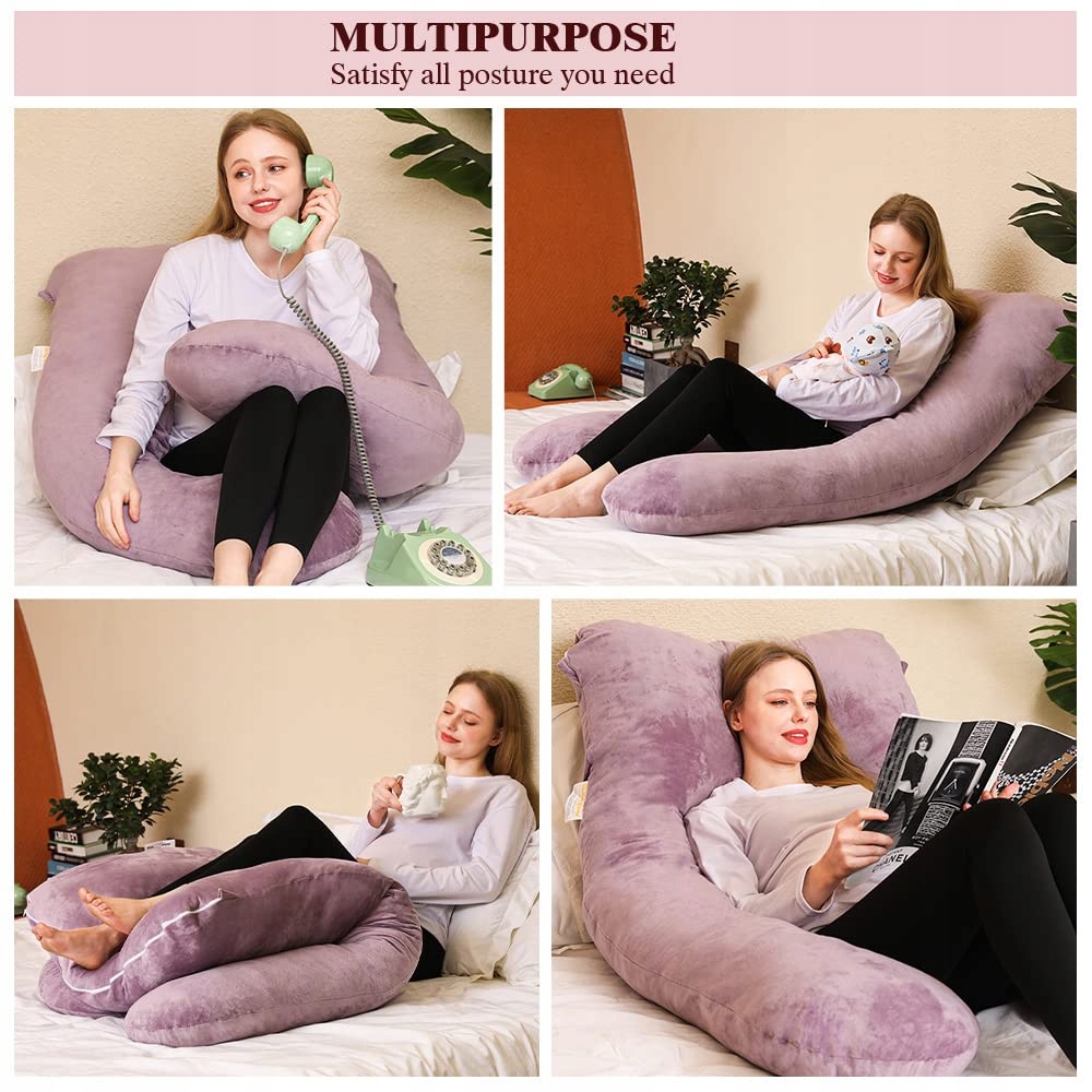 Chilling Home Poduszka ciążowa, U kształt poduszka dla śpiących na boku z pokrowcem U poduszka duża poduszka do karmienia, poduszka dla kobiet i śpiących na boku (Fioletowy, Aksamit)