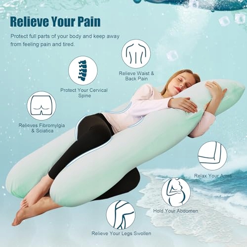 Chilling Home Poduszka ciążowa w kształcie litery U, poduszka do spania na boku z oddychającą poszewką z dżerseju, duża poduszka do karmienia, poduszka dla kobiet i osób śpiących na boku (Miętowa Zieleń)