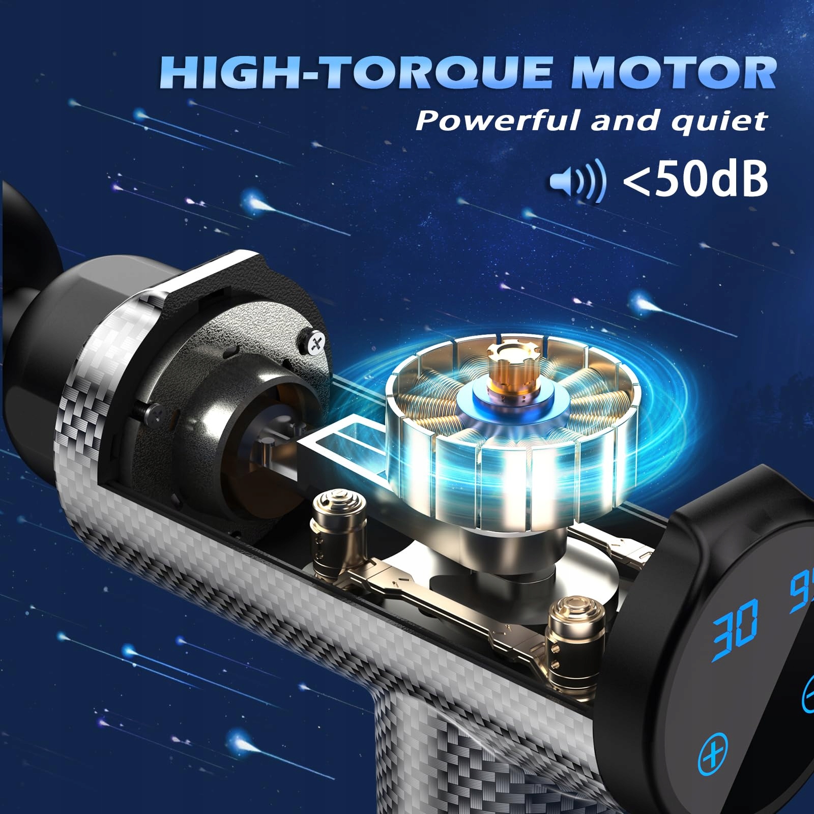 Nowoczesny design i 30 regulowanych poziomów prędkości: Pistolet do masażu JamGym zaprojektowany jest z ekranem dotykowym LCD, który oferuje użytkownikom szerszy wybór. Użytkownicy mogą przełączać się na dowolny poziom prędkości. Design z ekranem dotykowym nadaje pistoletowi do masażu bardziej technologiczny i nowoczesny wygląd.
