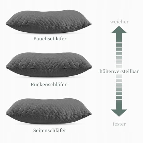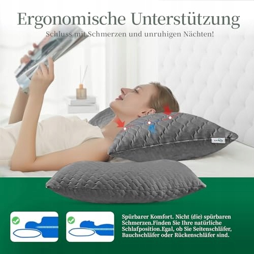Indywidualny komfort: W przeciwieństwie do zwykłych poduszek, ta wypełniona granulowaną pianką memory poduszka jest nieskończenie regulowana. Po prostu dodaj lub usuń wypełnienie, aby idealnie dopasować kształt i rozmiar do swojej pozycji snu. Gwarantuje to maksymalny komfort dla wszystkich nawyków snu i typów sylwetki – idealna dla osób śpiących na plecach, boku lub brzuchu. Bez względu na to, jak leżysz, możesz oprzeć na niej ręce, co zapewnia zrelaksowaną pozycję ramion i barków.