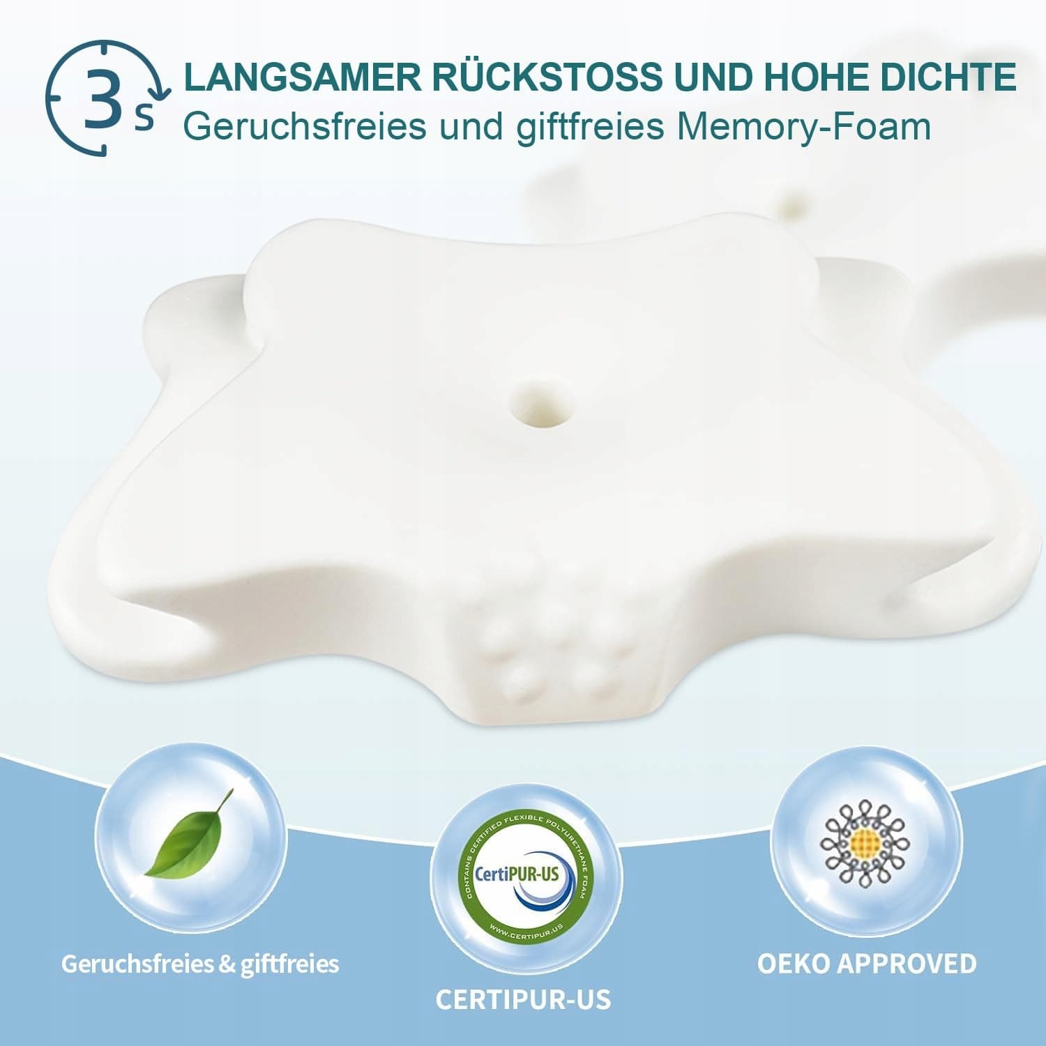 Komfortowe wsparcie: Poduszka szyjna CHxxy z ergonomicznym konturem idealnie dopasowuje się do kręgosłupa szyjnego. Wykonana z termo-czułej pianki memory, oferuje przyjemnie miękką fakturę oraz równomierne i pełne wsparcie. Absorbuje nacisk głowy, zmniejsza ucisk i umożliwia zrelaksowaną pozycję leżącą – dla lepszego rozluźnienia mięśni szyi i regenerującego snu.