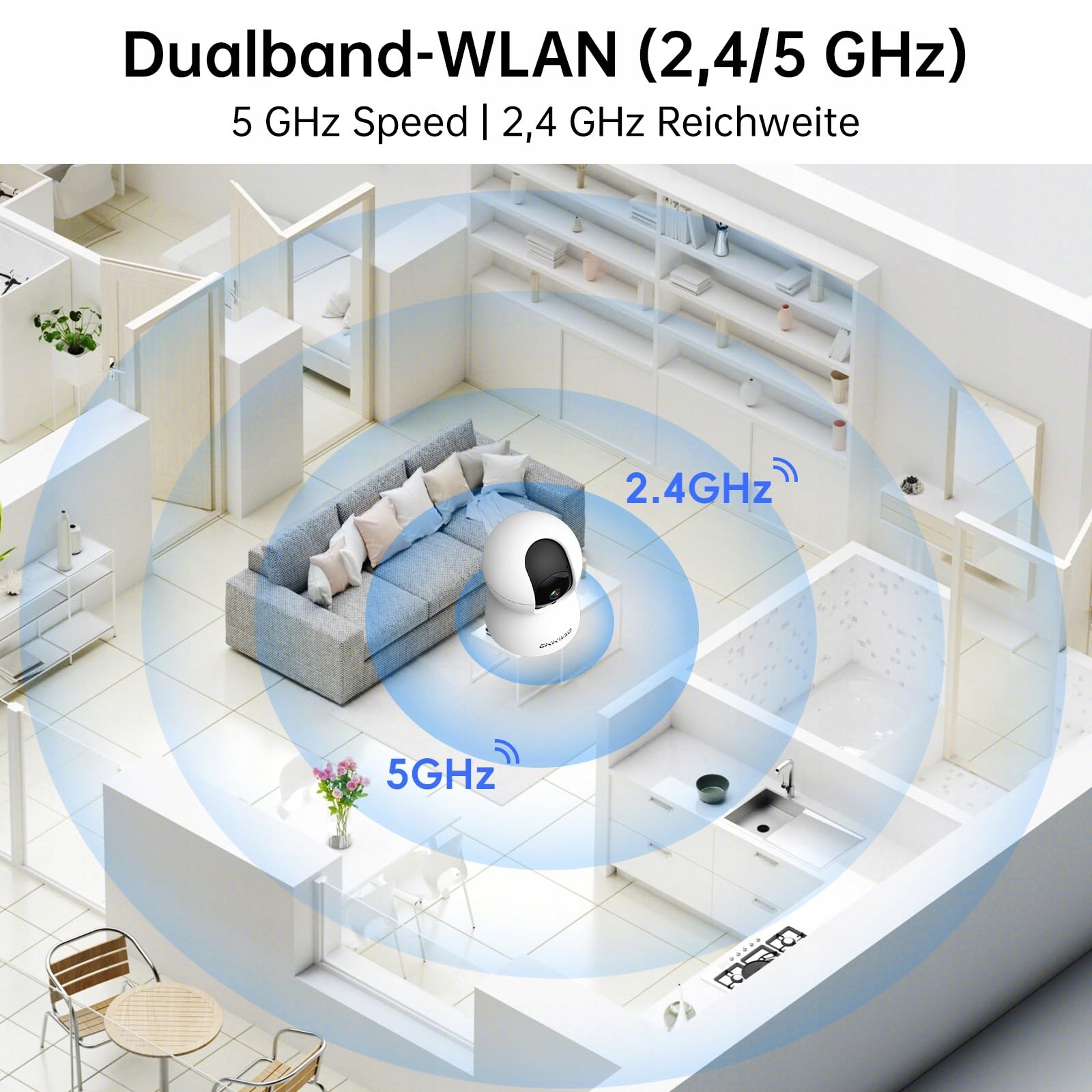𝗗𝘂𝗮𝗹-𝗕𝗮𝗻𝗱 𝗪𝗟𝗔𝗡 (𝟮.𝟰/𝟱 𝗚𝗛𝘇) – 𝗦𝘇𝘆𝗯𝗸𝗶 𝗺𝗼𝗻𝘁𝗮ż: Kamera do monitoringu 5ghz wlan CiKiKWXO łączy się bezproblemowo z routerami 5G dla stabilnego streamingu. Konfiguracja w kilka sekund za pomocą aplikacji ''Tris Home'' – gotowa do użycia jako kamera do monitoringu wewnętrznego lub kamera bezpieczeństwa wewnętrznego.