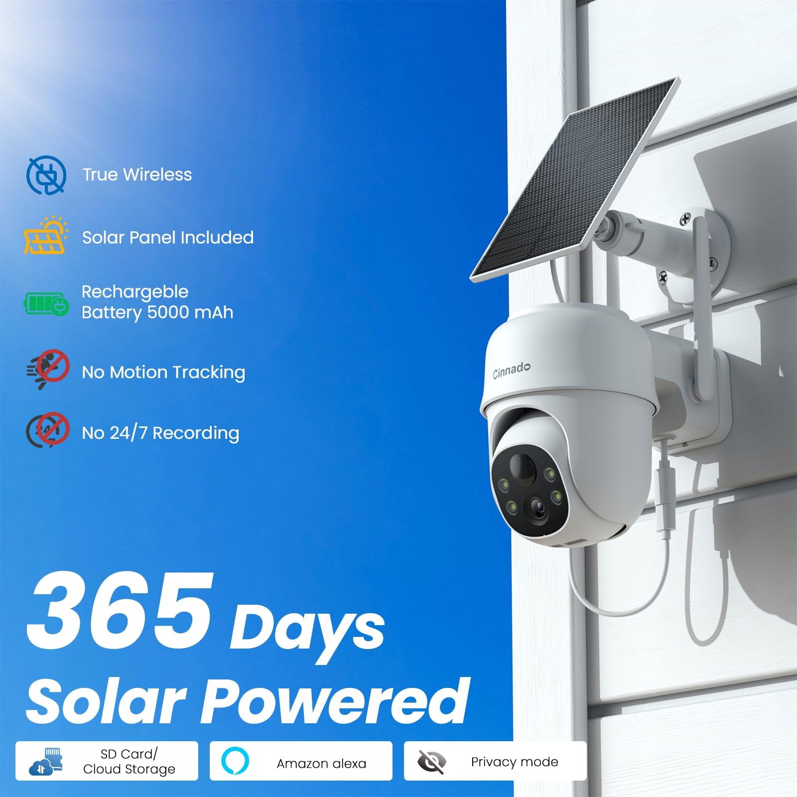 CINNADO Kamera Zewnętrzna 2K Solar Bezprzewodowa 360° PIR IP65 Audio | Premium Supply