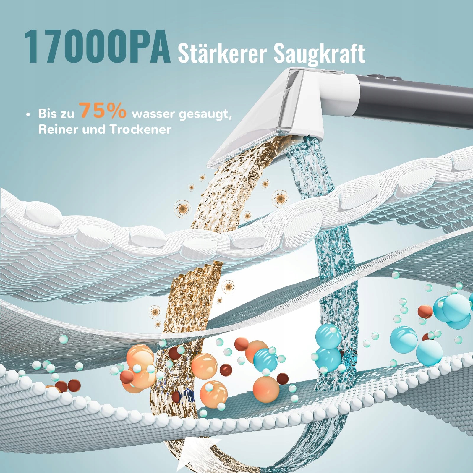 【17kPa Nadzwyczajna Siła Ssania】 Urządzenie do czyszczenia tapicerki na mokro jest wyposażone w potężną pompę 580W, która zapewnia siłę ssania do 17 kPa i wskaźnik odzysku wilgoci do 80%. Odkurzacz do tapicerki z funkcją spryskiwania czystą wodą, szorowania i zasysania brudnej wody sprawia, że dywan wygląda jak nowy i pozostaje prawie suchy