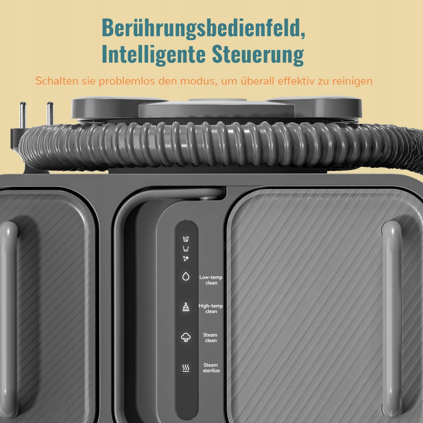 【4 Tryby Czyszczenia】Parownica oferuje cztery tryby: Czyszczenie w niskiej temperaturze 40°C: dla lekkich codziennych plam, wzmocnione działanie roztworu czyszczącego. Czyszczenie w wysokiej temperaturze 60°C: Gorąca woda skutecznie usuwa uporczywe plamy. Czyszczenie parowe w 100°C: Głębokie wnikanie usuwa 99,99% bakterii i roztoczy. Sterylizacja parowa w 100°C: Zapewnia higienę i dezynfekcję materacy, poduszek i odzieży