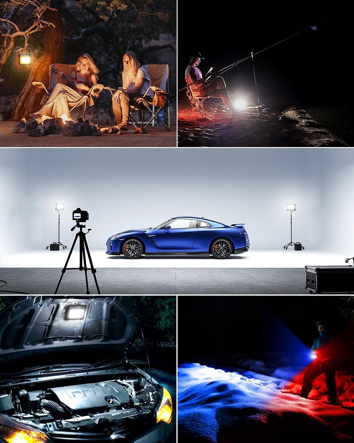 【4 tryby oświetlenia i 5-stopniowe ściemnianie】Reflektor LED na baterie oferuje zimne białe/6000K, naturalne białe/4000K, ciepłe białe/2700K, czerwone i niebieskie migające dla trybu SOS i 5 poziomów jasności (100%–75%–50%–25%–10%). Czas pracy lampy kempingowej przy maksymalnej jasności wynosi około 10 godzin, a przy minimalnej jasności ponad 100 godzin. W nagłym wypadku możesz polegać na przenośnej lampie roboczej LED na baterie przez długi czas.