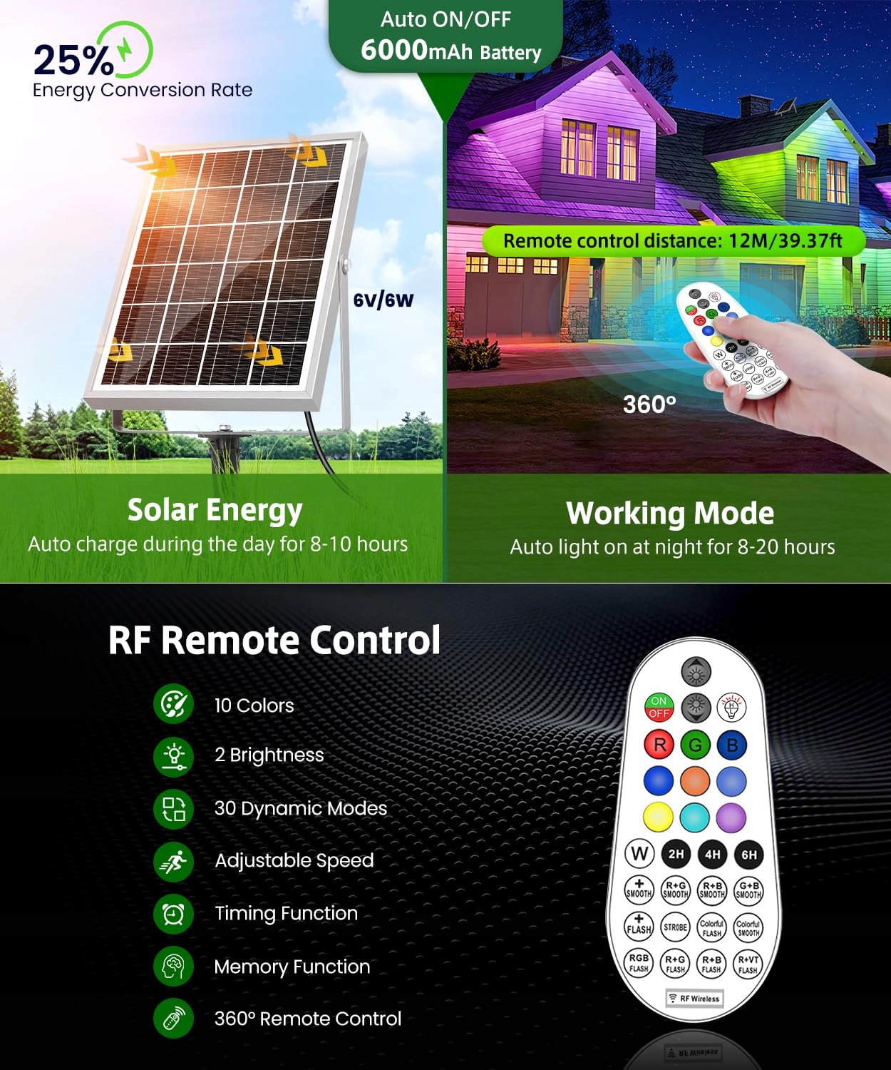 CLV reflektory solarne RGB Lampa solarna RGB na zewnątrz 4 sztuki z pilotem IP66 wodoodporna 12 kolorów 5 trybów zmiana koloru ściemnialna reflektory RGB na zewnątrz do ogrodów krzewów