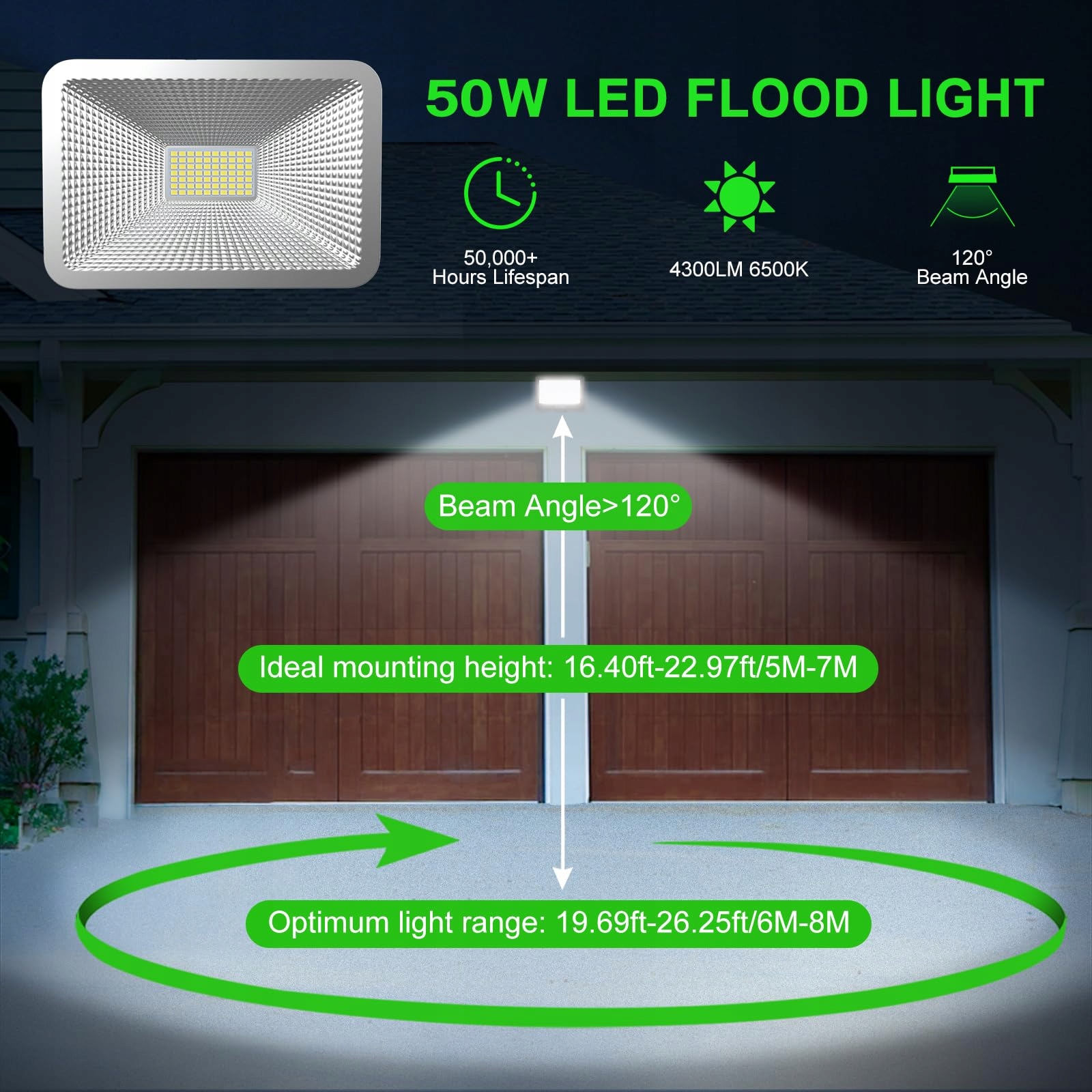 ️Oszczędność energii i szeroki kąt świecenia - ten reflektor o jasności do 4300 lm oszczędza ponad 85% energii w porównaniu z halogenową lampą 350 W. Kąt świecenia reflektora wynosi 120°, co zapewnia szerszy obszar oświetlenia.