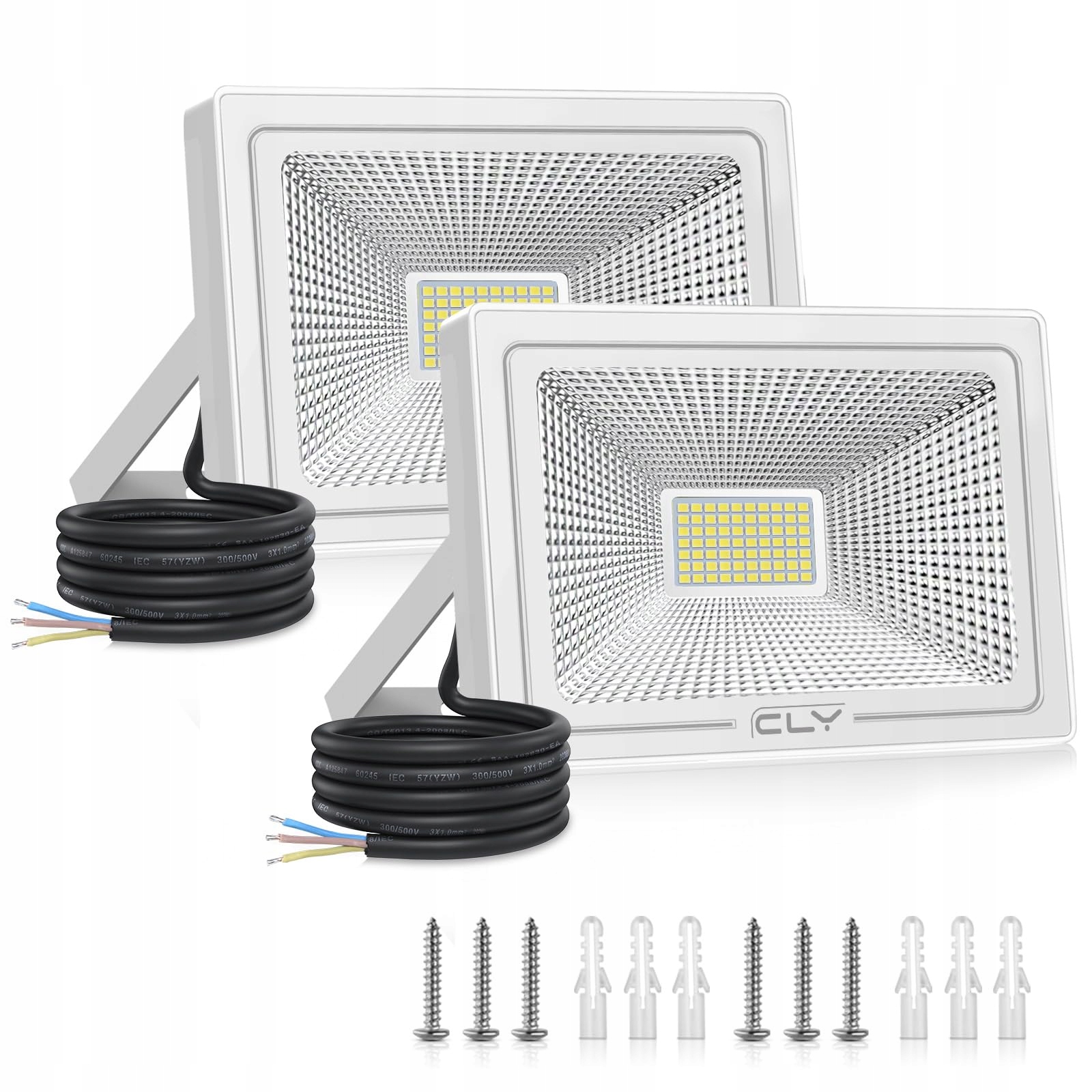 CLY 2 sztuki 50 W reflektorów LED do użytku zewnętrznego, reflektory LED na zewnątrz, 4300 lm, światło bezpieczeństwa, wodoodporne IP66, reflektory zewnętrzne zimna biel, 6500 K, do ogrodu, korytarza, tarasu, patio