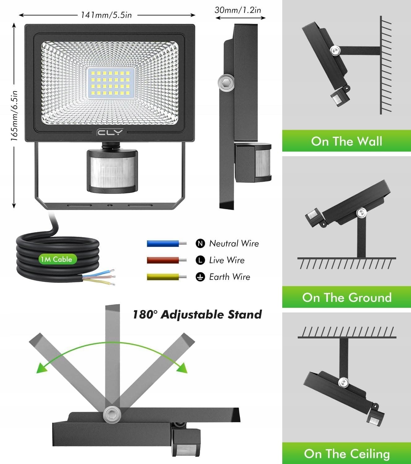 【4 inteligentne tryby】CLY LED reflektor z czujnikiem 25W umożliwia wybór 4 różnych trybów oświetlenia, prostą regulację trybu stałego światła, trybu czujnika ruchu PIR (24 godziny lub noc) z regulowanym zasięgiem detekcji (6M/9M/12M) oraz regulowanym czasem świecenia (45S/90S/120S/5MIN/10MIN), timer 1H 2H 3H. Wszystkie funkcje można dostosować jednym kliknięciem do różnych potrzeb