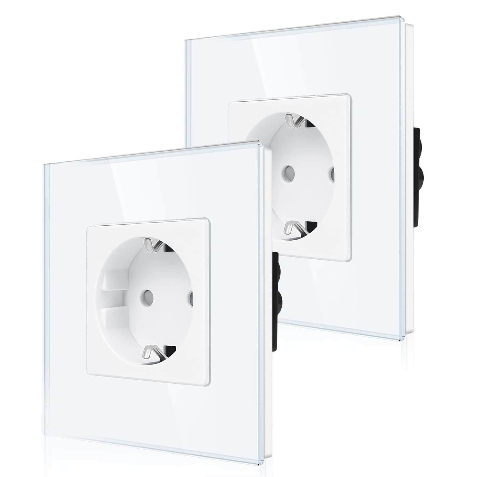 2-pak CNBINGO Gniazdo pojedyncze podtynkowe w białym kolorze - Proste gniazdo Schuko z zabezpieczeniem dla dzieci - 16 Amp gniazdo ochronne ścienne z ramką szklaną
