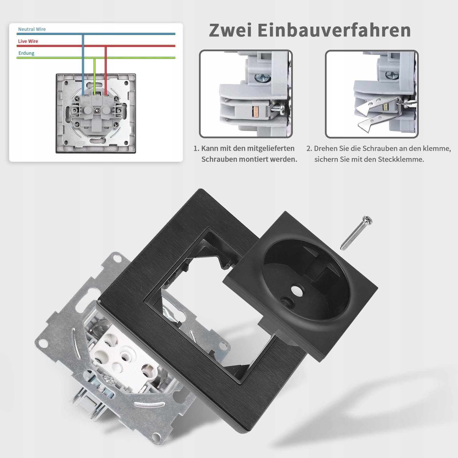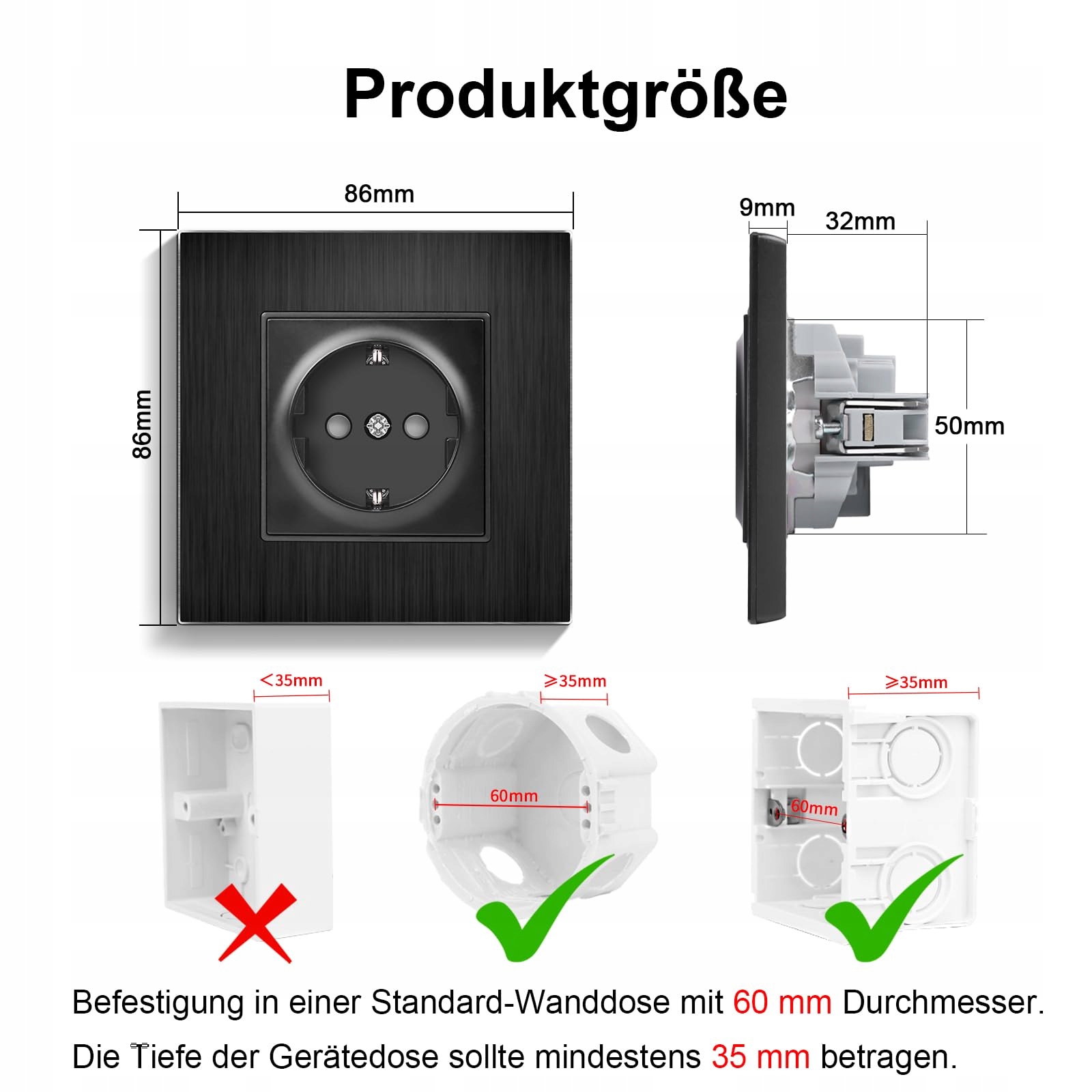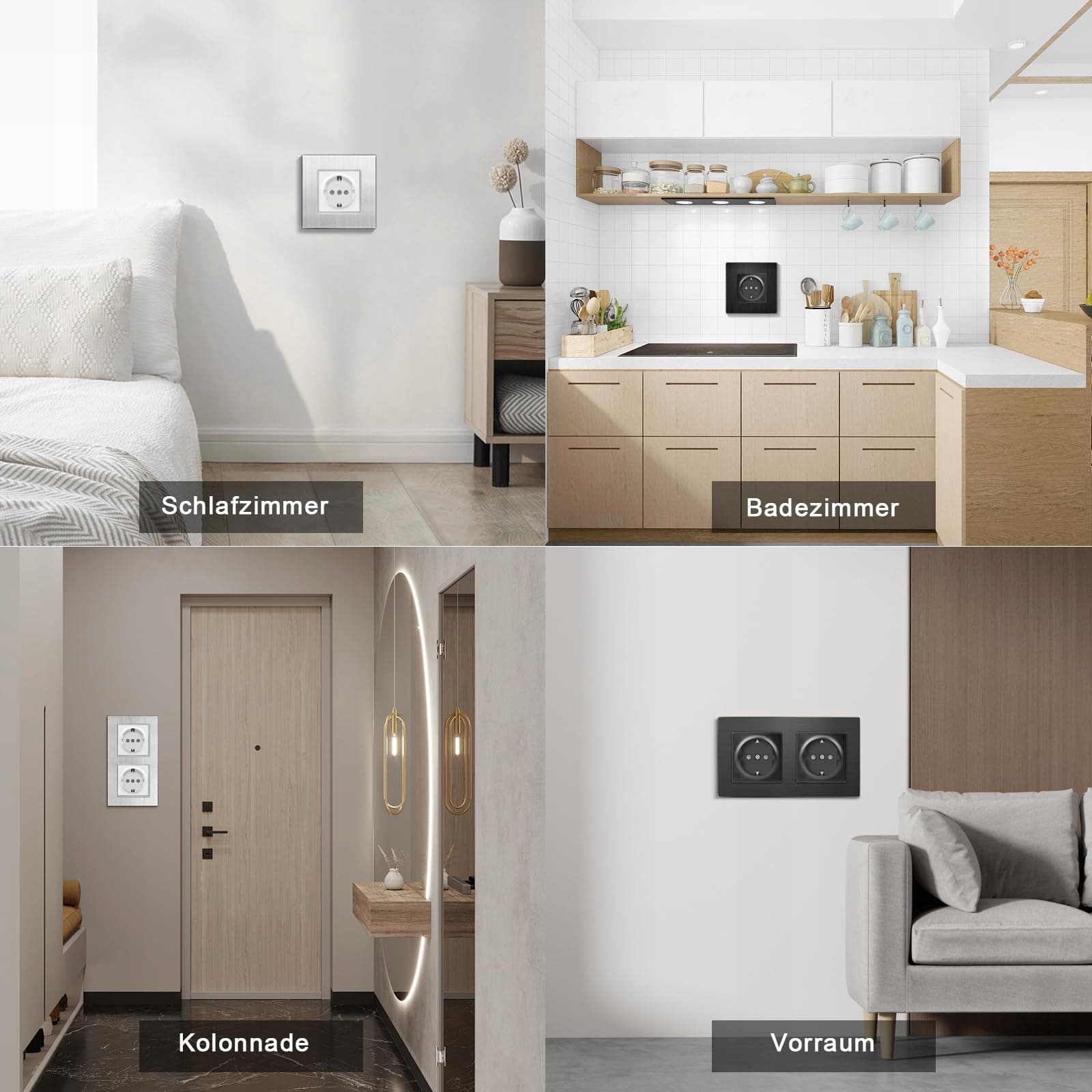 Specyfikacja: Standardowe gniazdo Schuko obsługuje większość urządzeń domowych, wsparcie AC 16Amp 230V. I zastępuje tradycyjne plastikowe gniazda modnymi produktami.