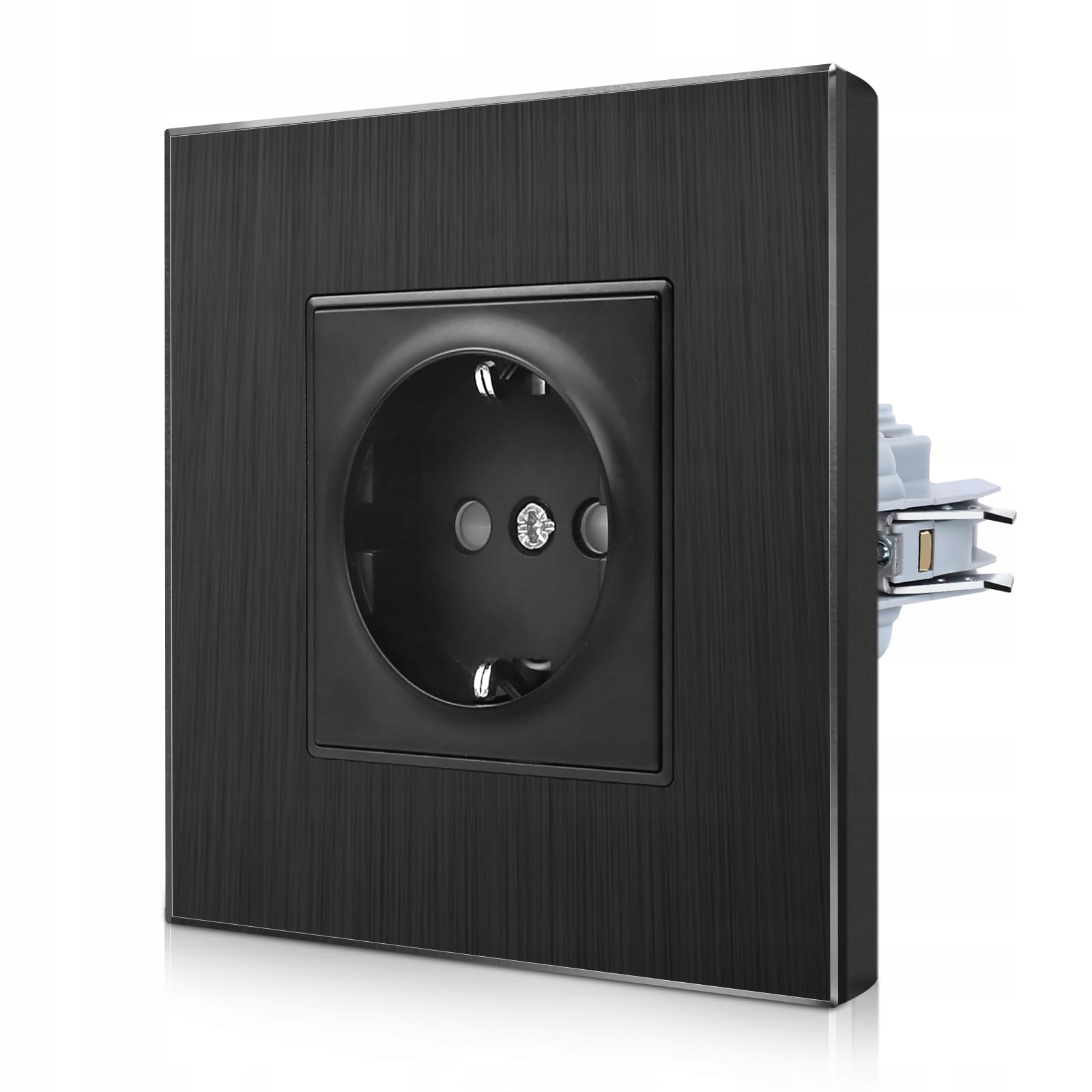Gniazdo CNBINGO z aluminium z zaciskami - Czarny Proste gniazdo Schuko podtynkowe - Gniazdo ścienne z kontaktem ochronnym z ramką aluminiową - 1 gniazdo