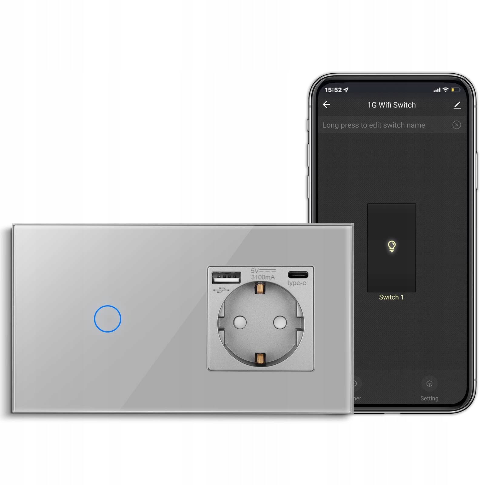CNBINGO Inteligentny Włącznik Dotykowy Z Gniazdem USB Typ C WiFi Szary | Premium Supply