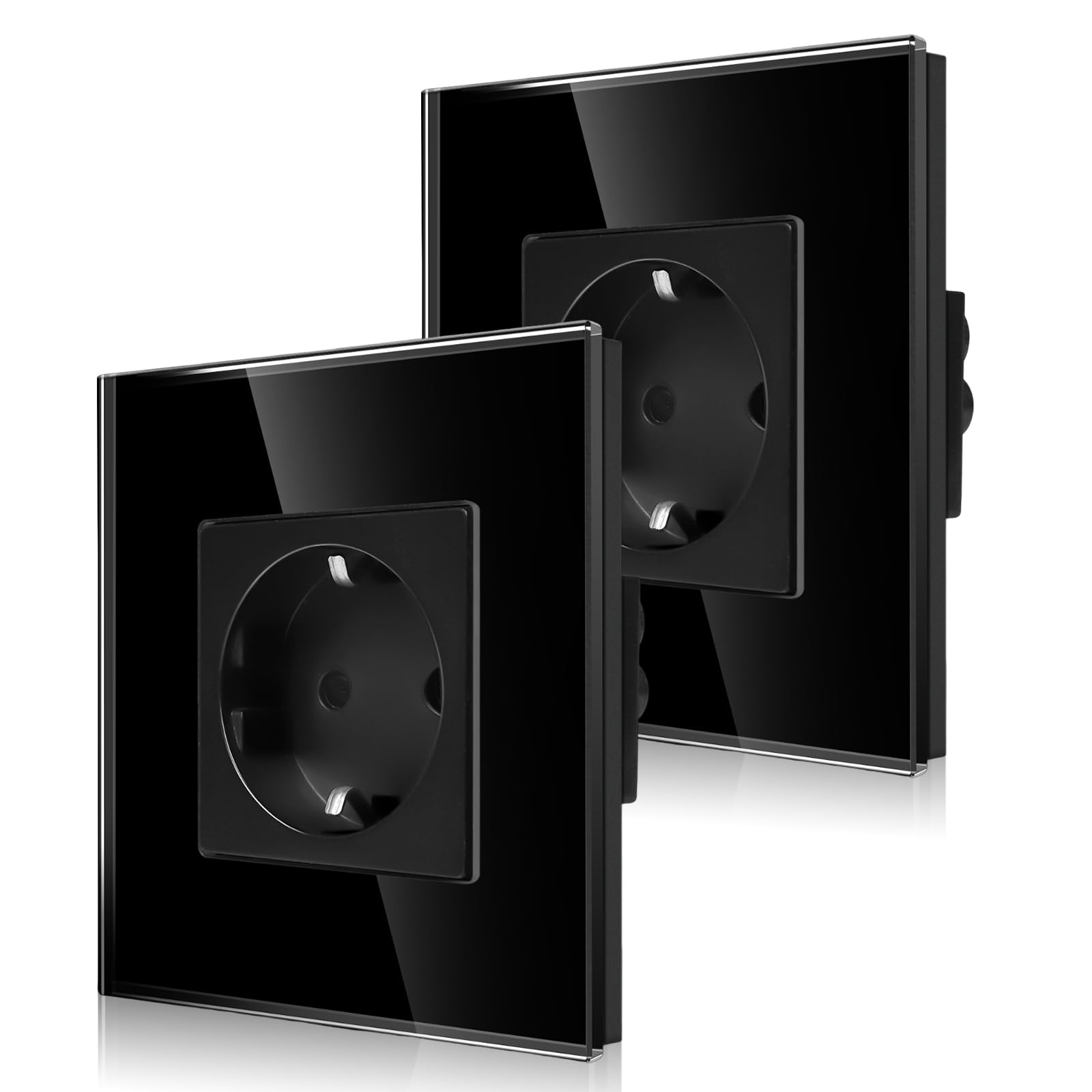 2-pak CNBINGO Gniazdo pojedyncze podtynkowe w kolorze czarnym - Proste gniazdo Schuko z zabezpieczeniem dla dzieci - 16 Amp gniazdo ochronne ścienne z ramką szklaną