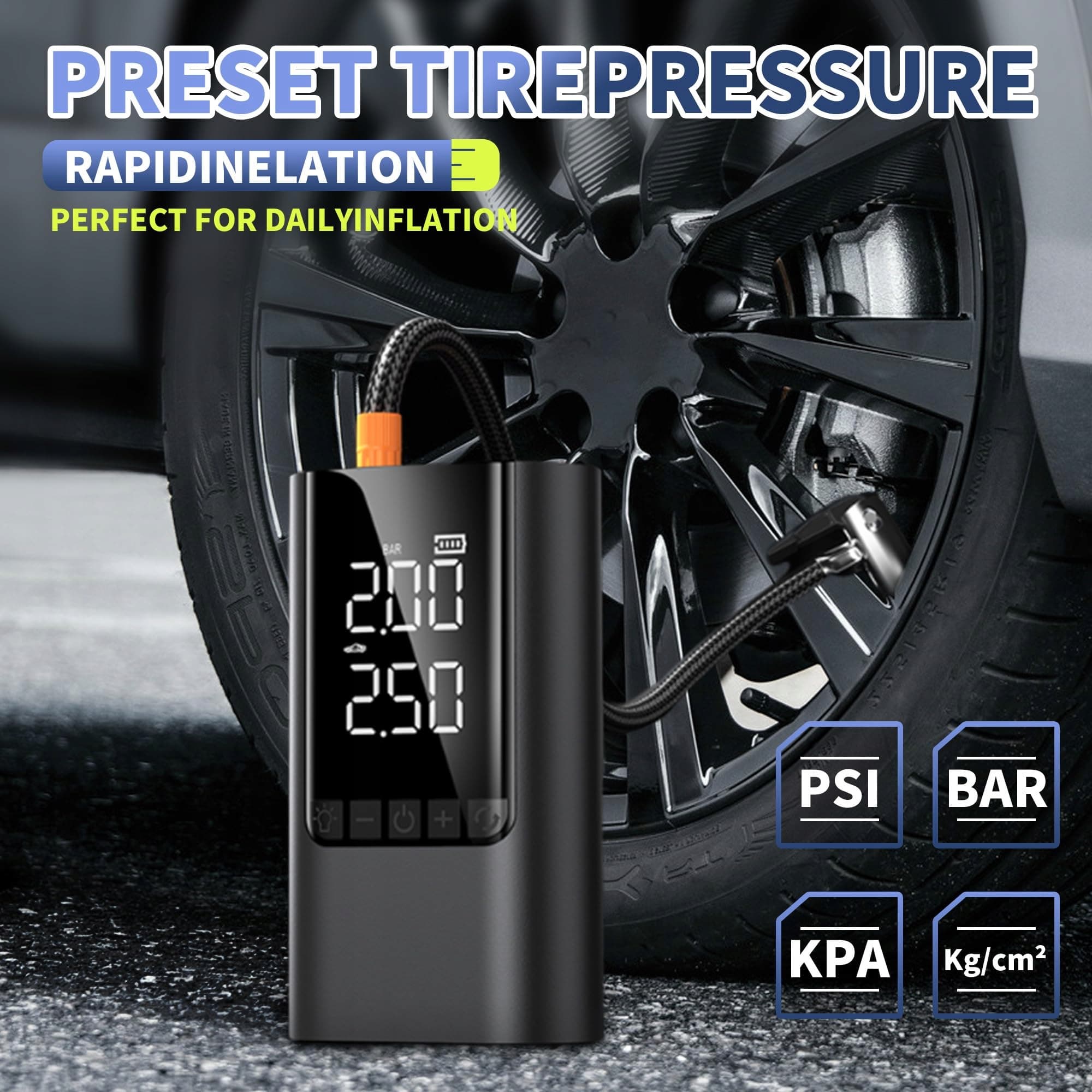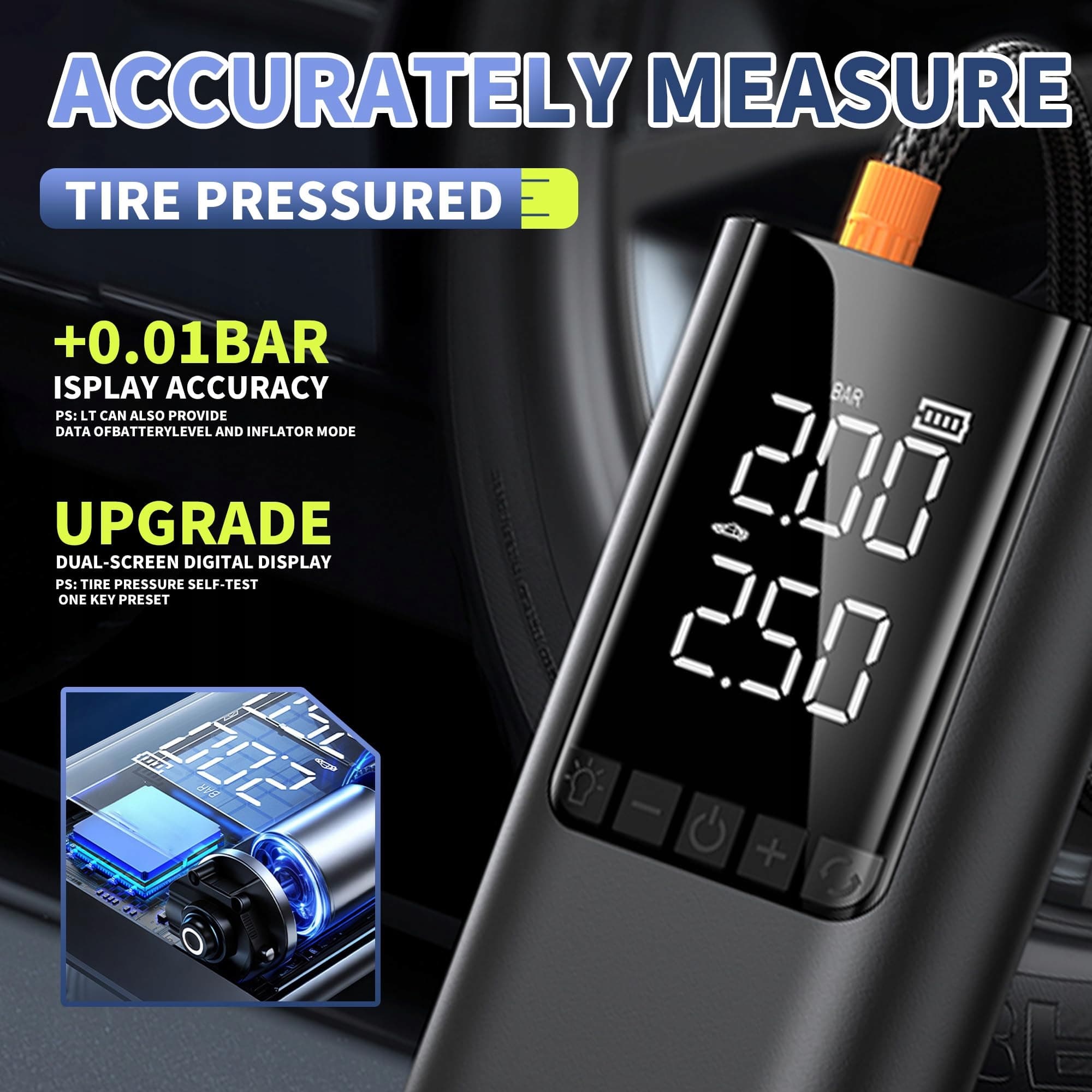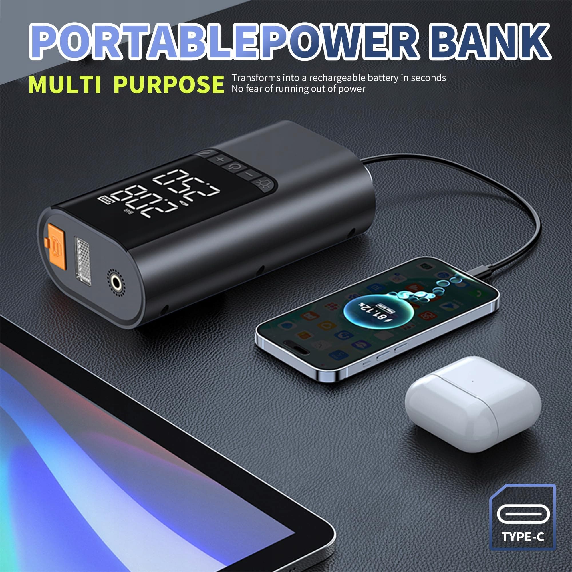 Precyzyjny kompresor 150 PSI: Ten powerbank do rozruchu z kompresorem oferuje pięć trybów pompowania, trzy jednostki ciśnienia i automatyczne wyłączanie dla wygodnego napełniania; zawiera cztery różne końcówki do elastycznego pompowania opon, piłek i artykułów rekreacyjnych przy stabilnym ciśnieniu