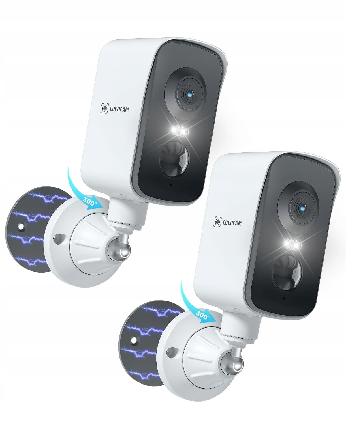 COCOCAM 2SZT Przenośna magnetyczna kamera monitoringu 4G z kartą SIM na zewnątrz/wewnątrz, bezprzewodowa kamera 2K do kamperów, na kemping i podróże, zakres obrotu 300°, bateria 10000Ah, wbudowana karta SIM (bez Wi-Fi)
