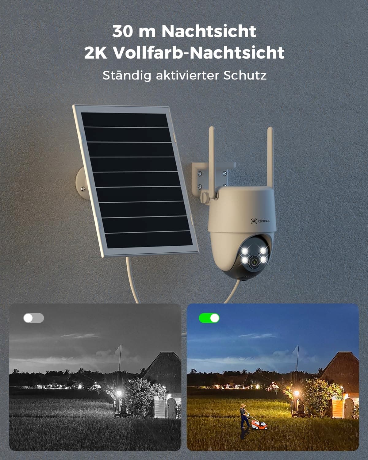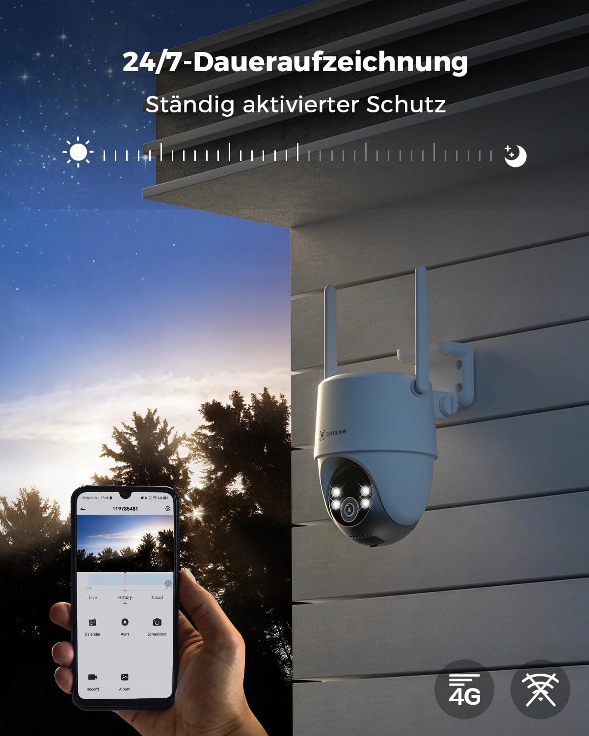 COCOCAM Kamera Zewnętrzna 4G LTE z SIM 15000mAh Solar 2K PTZ Nocna Wizja